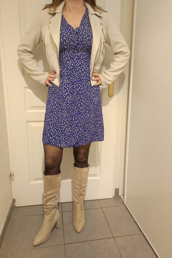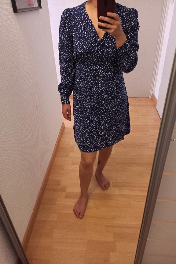 โข Robe courte en viscose รฉcoresponsable ecoveroโข imprimรฉe โข Bleue avec imprimรฉs abstraits blancs โข Encolure V et dรฉcoupe taille โข 3 petits boutons viennent dรฉcorer l'encolure. โข Manches longues avec fronces en tรชte de manches, poignets boutonnรฉs et fentes bas de manches. โข Zippรฉe dans le dos โข Longueur : 97 cm