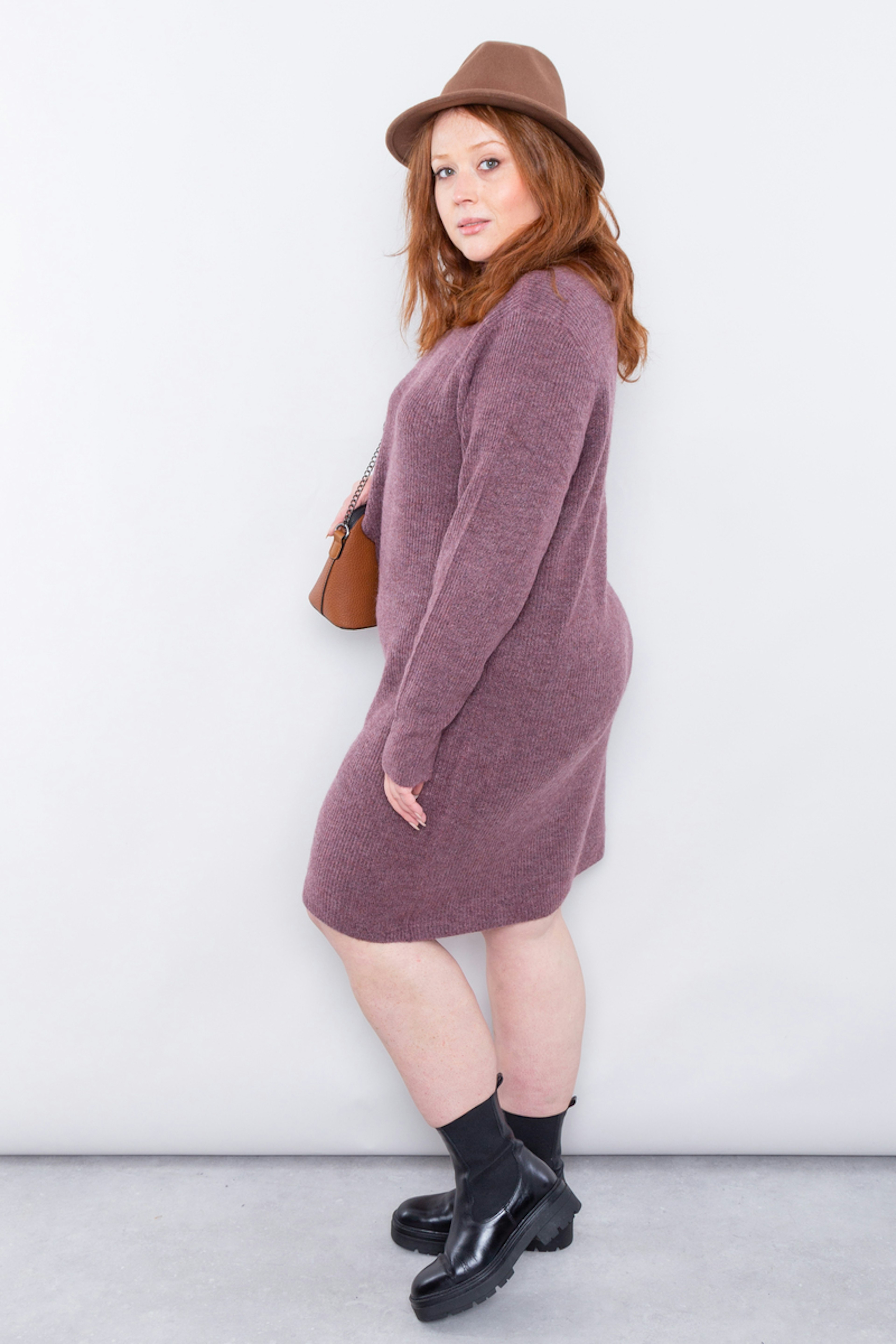 โข Robe pull idรฉale pour l'hiver โข Couleur violine โข Col cheminรฉe โข Contient de la laine