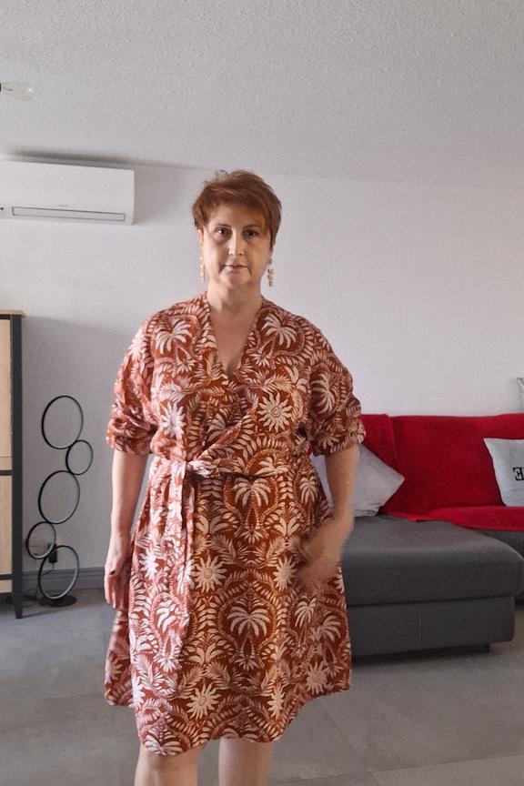 “robe légère avec un imprimé qui m'a plu, par contre l'élastique à la taille m'a gêné et du coup pas très confortable”