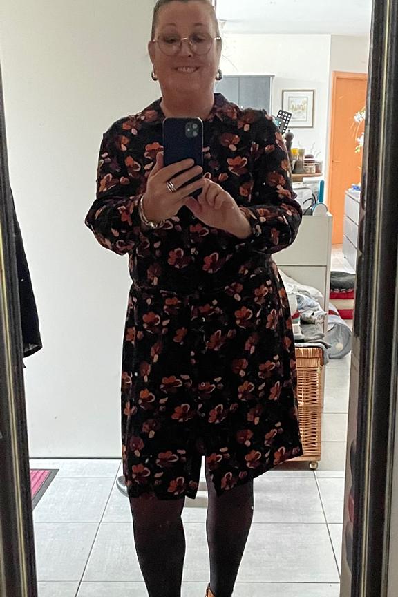 โข Robe chemise ร imprimรฉ floral โข Manches longues โข Cintrรฉe ร la taille avec ceinture ร nouer