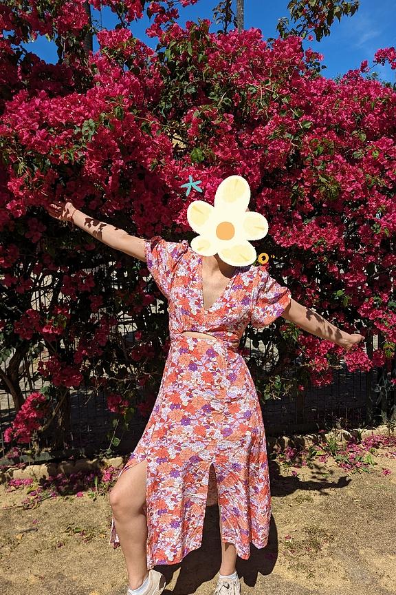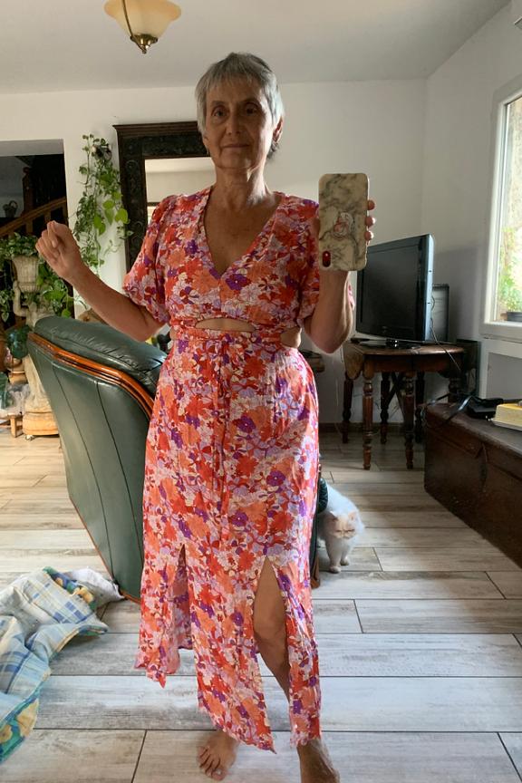 -Robe midi ร imprimรฉ fleuri tomette -Col v -Dรฉtails dรฉcoupe avant et dos nu ร nouer -Manches courtes รฉlastiquรฉes -Fendue cรดtรฉs -Doublรฉe et faite en 100% viscose FSC La longueur de la robe est de 122cm pour une 36. Choisissez votre taille habituelle. Entre deux tailles, choisissez la taille en-dessous.