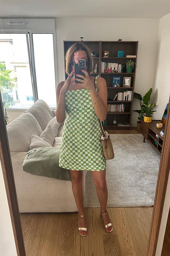 Associez cette robe à des sandales minimalistes et un chapeau de paille pour un look estival décontracté. • Robe courte en coton-lin • Décolleté carré • Coupe patineuse • Fines bretelles • Fermeture éclair discrète dans le dos Modèle qui taille petit, privilégiez la taille au dessus.