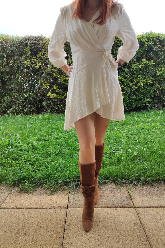 “Magnifique Robe que ce soit pour un évènement ou casual. Courte devant mais plus longue à l'arrière ce qui permet de la porter au naturel même quant on a un peu de cellulite”