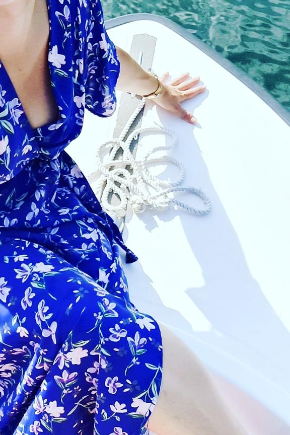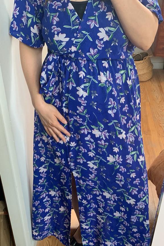 โข Robe longue imprimรฉe โข Manches courtes โข Fente sur la jupe โข Ouverture portefeuille