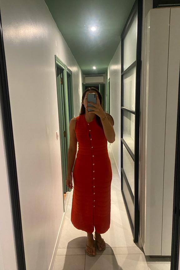 “Très classe avec les boutons dorés qui magnifient la robe. Stretch mais je la conseillerai plutôt pour une taille M que L”