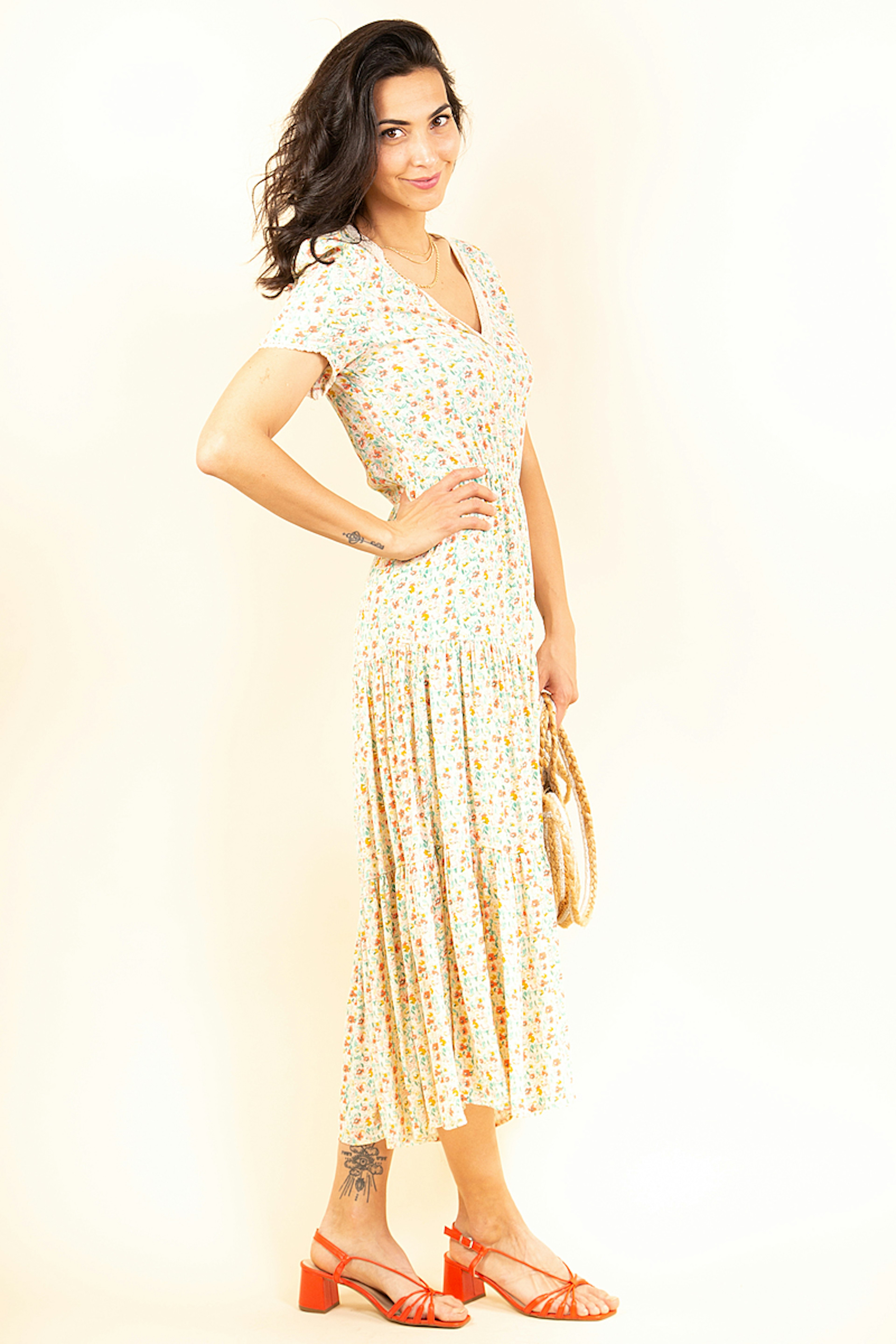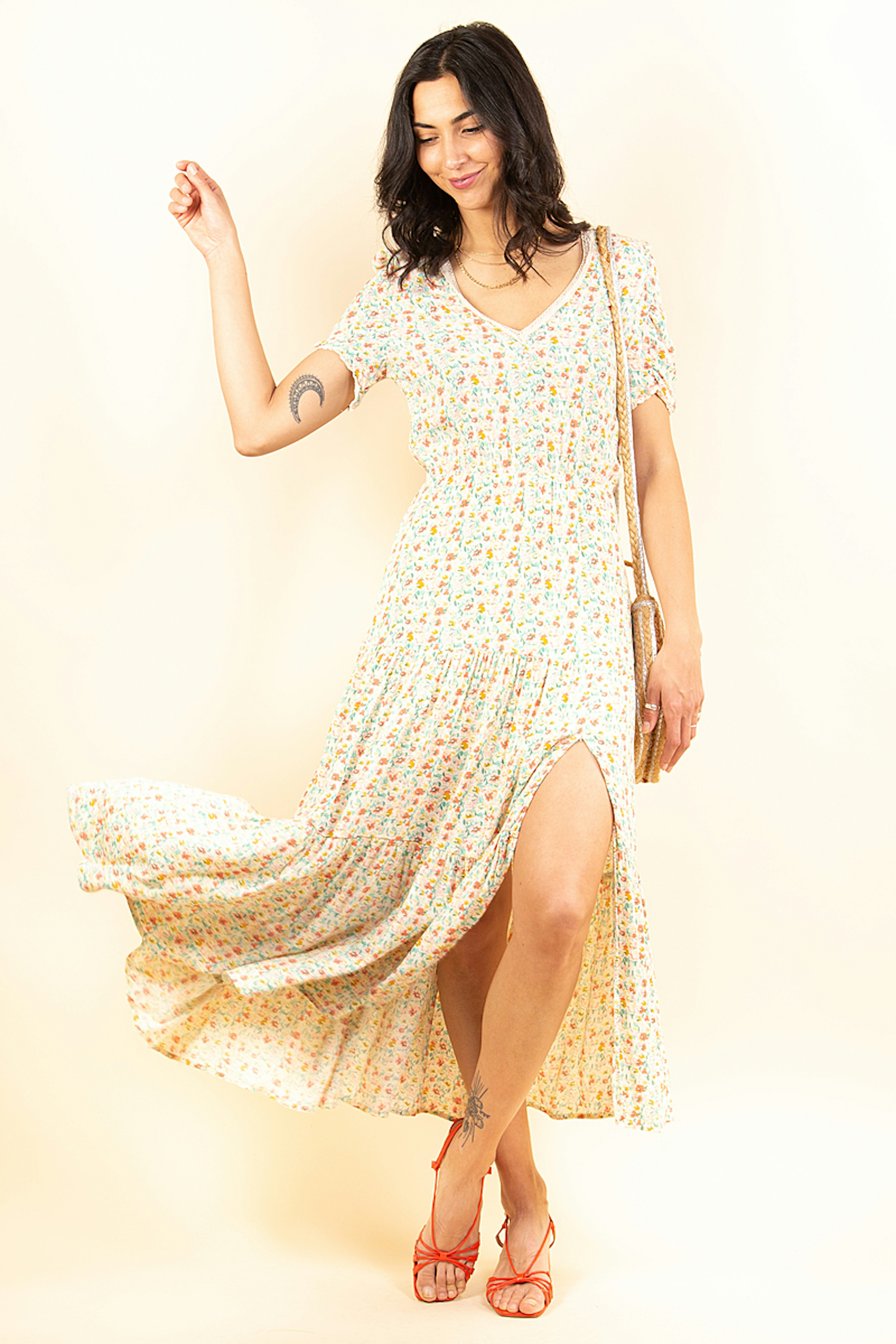 Cindi est une robe bohรจme imprimรฉe fleurie. En viscose, elle est idรฉale pour le printemps รฉtรฉ. On aime le dรฉtail au dรฉcolletรฉ qui apporte un cรดtรฉ romantique ร cette robe.
