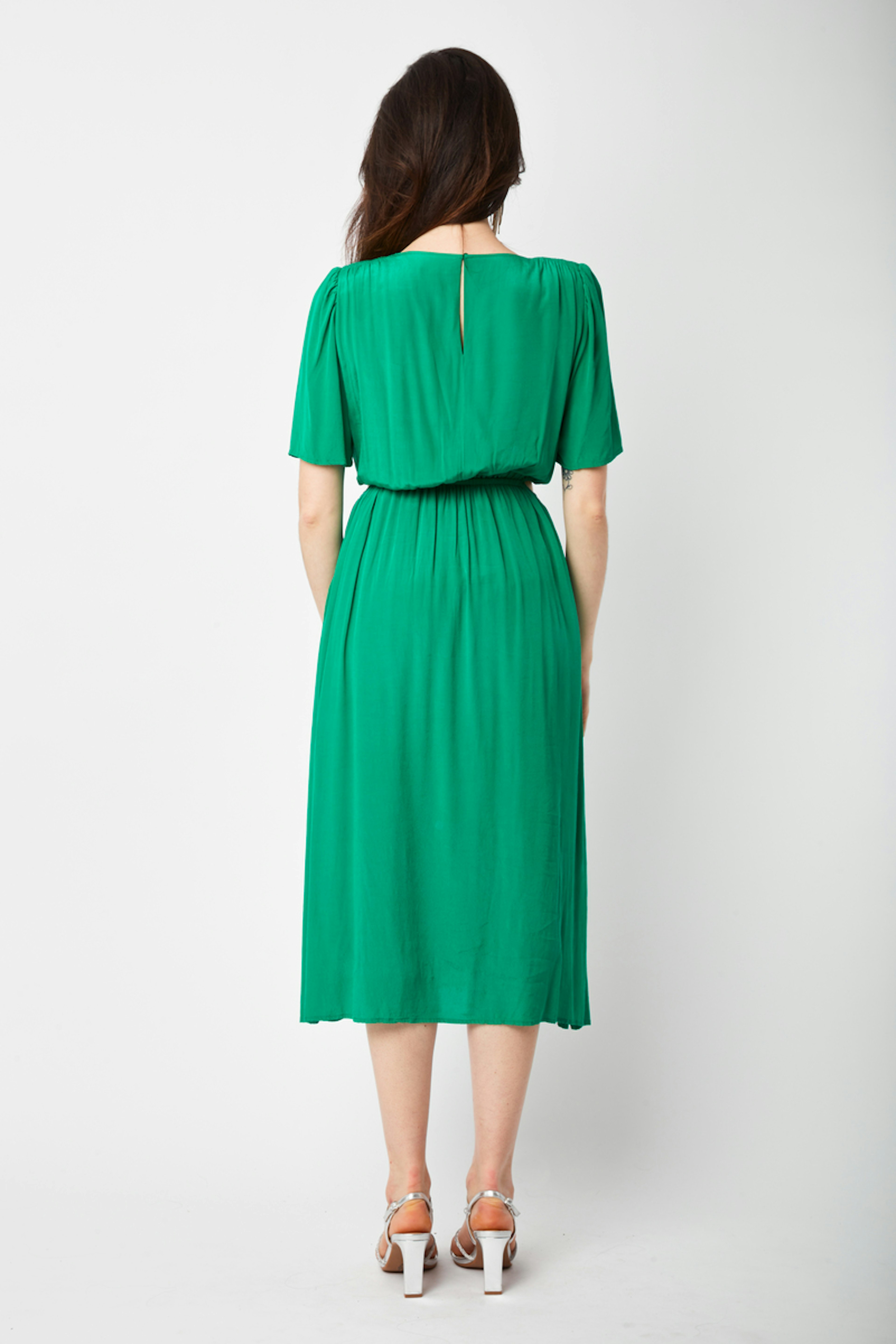 -Robe longue à ouvertures -Décolleté cache-coeur -Manches courtes -Fini satiné -Taille et ouvertures côtés élastiques -La robe est doublée La longueur de la robe est de 119cm pour une 36. Choisissez votre taille habituelle. Entre deux tailles, choisissez la taille au-dessus.