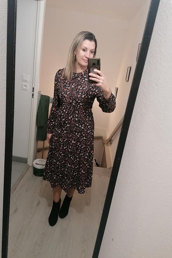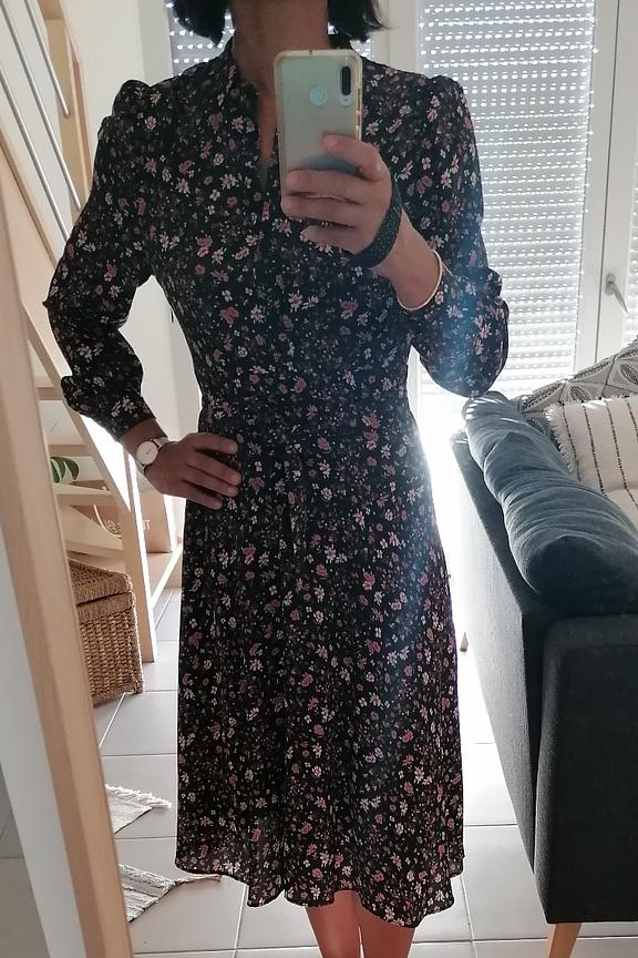 โข Robe mi-longue ร imprimรฉ floral โข Col rond avec col lavaliรจre โข Cintrรฉe ร la taille โข Petites fronces en bas des manches โข Fermeture zippรฉe invisible sur le cรดtรฉ โข Conรงue en polyester 100% recyclรฉ