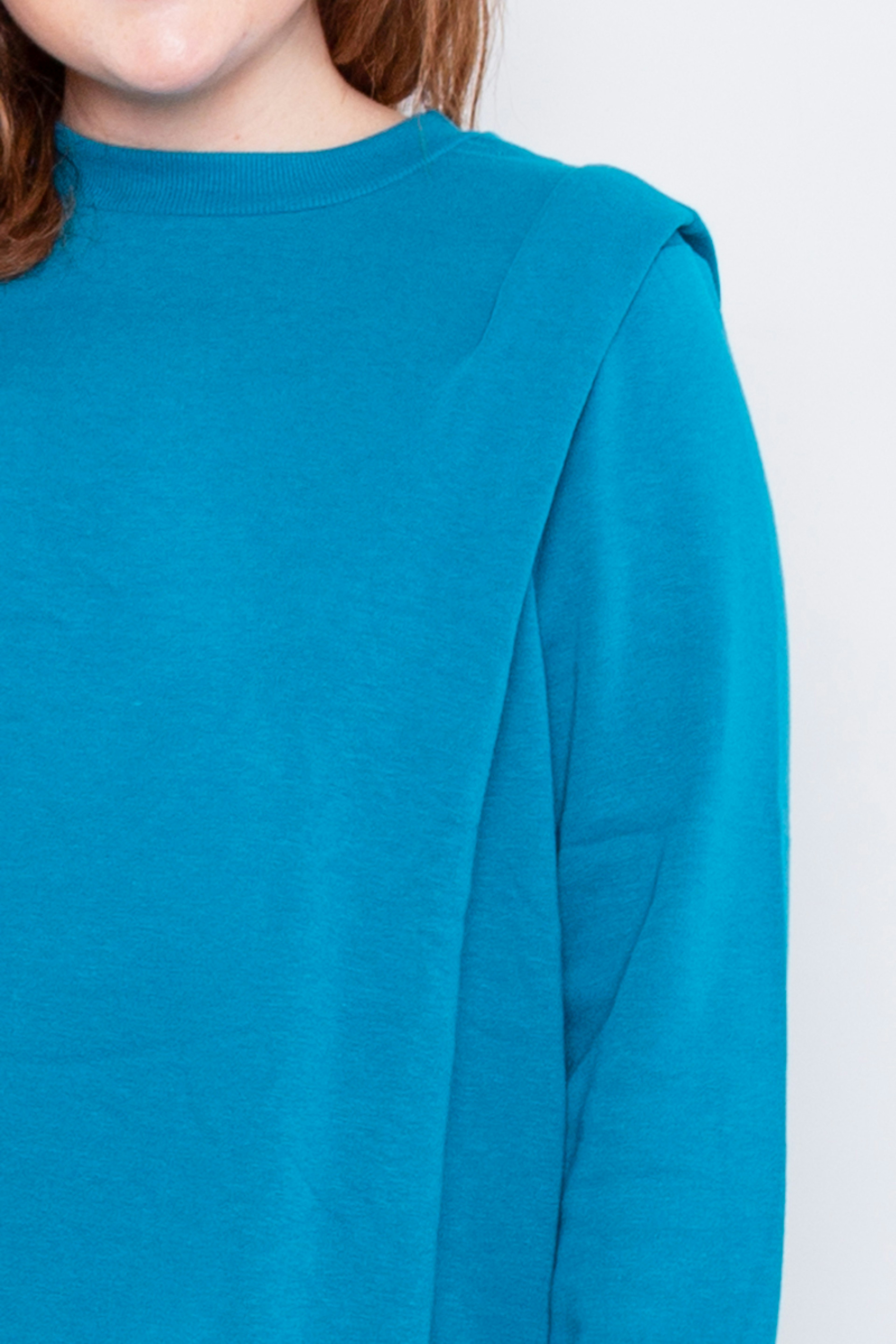 โข Robe ร รฉpaulettes bleue canard โข Coupe droite โข Longueur au-dessus du genou โข Matiรจre effet sweat