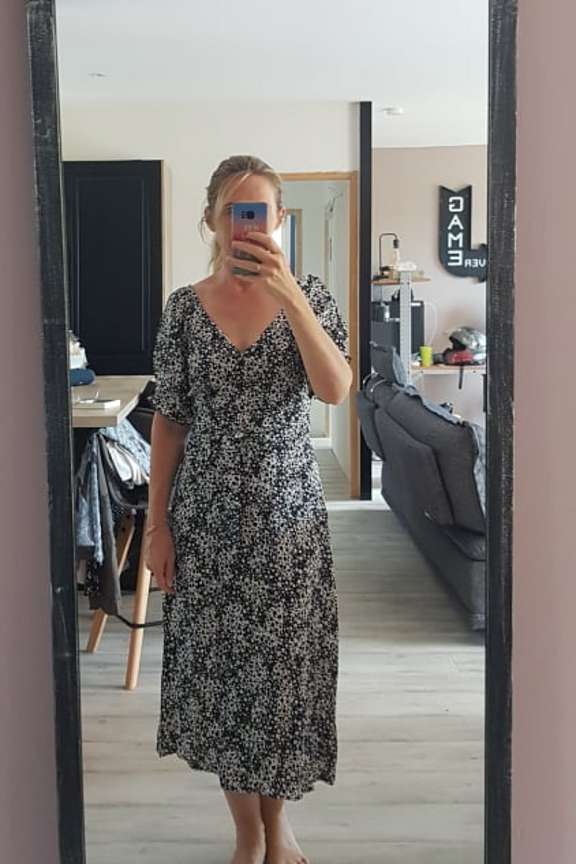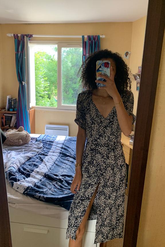 โRobe gardรฉe! Attention par contre la fente est trรจs marquรฉe et les jambes trรจs dรฉnudรฉes. J'ai mis une combi dessous pour ne pas รชtre dรฉshabillรฉe au moindre courant d'air...โ