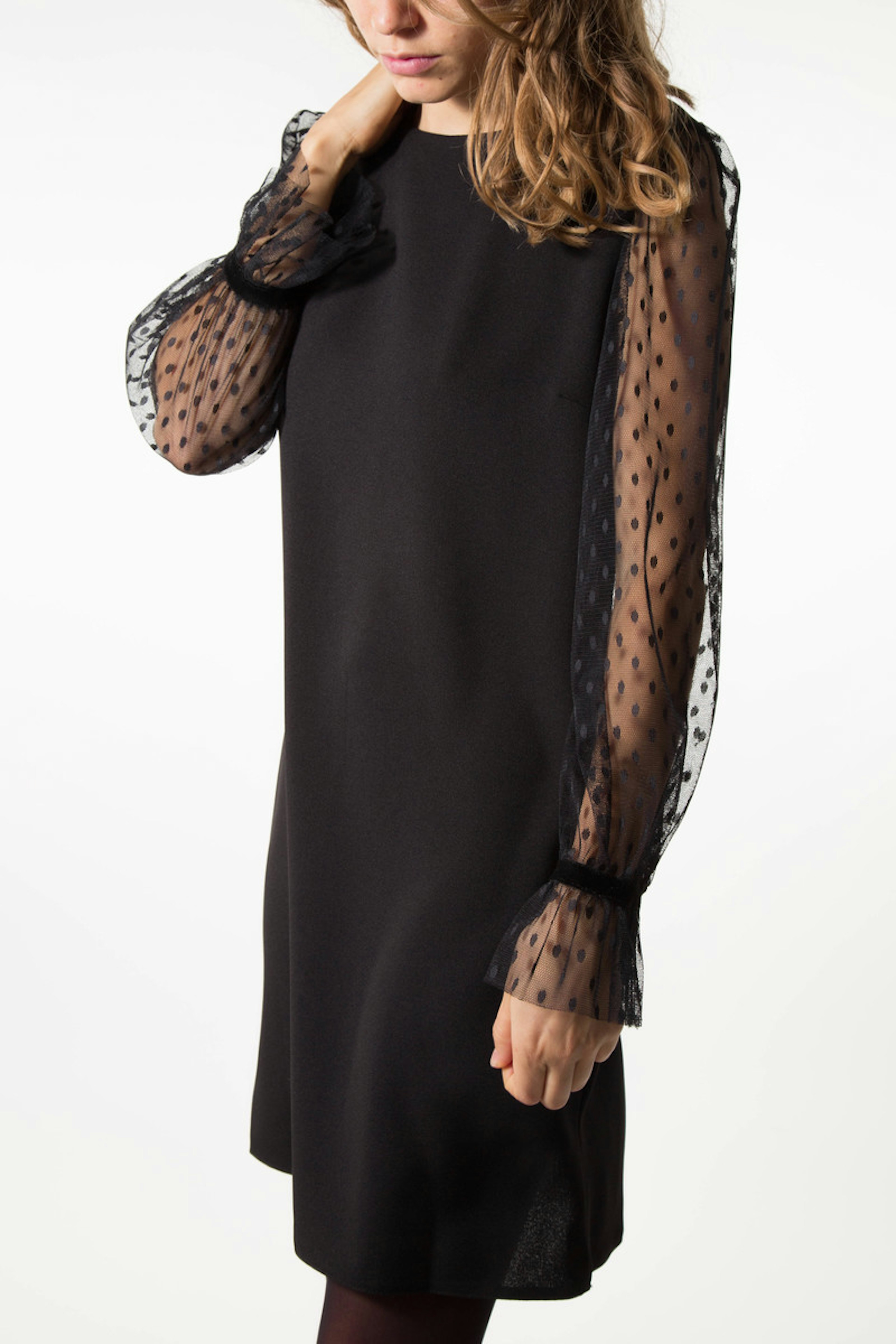 La robe Darla c'est la petite robe noire qui vous accompagne au travail comme le soir. Ses manches en transparence ร imprimรฉ pois et ses dรฉtails en ruban effet velours en font une piรจce รฉlรฉgante et moderne !
