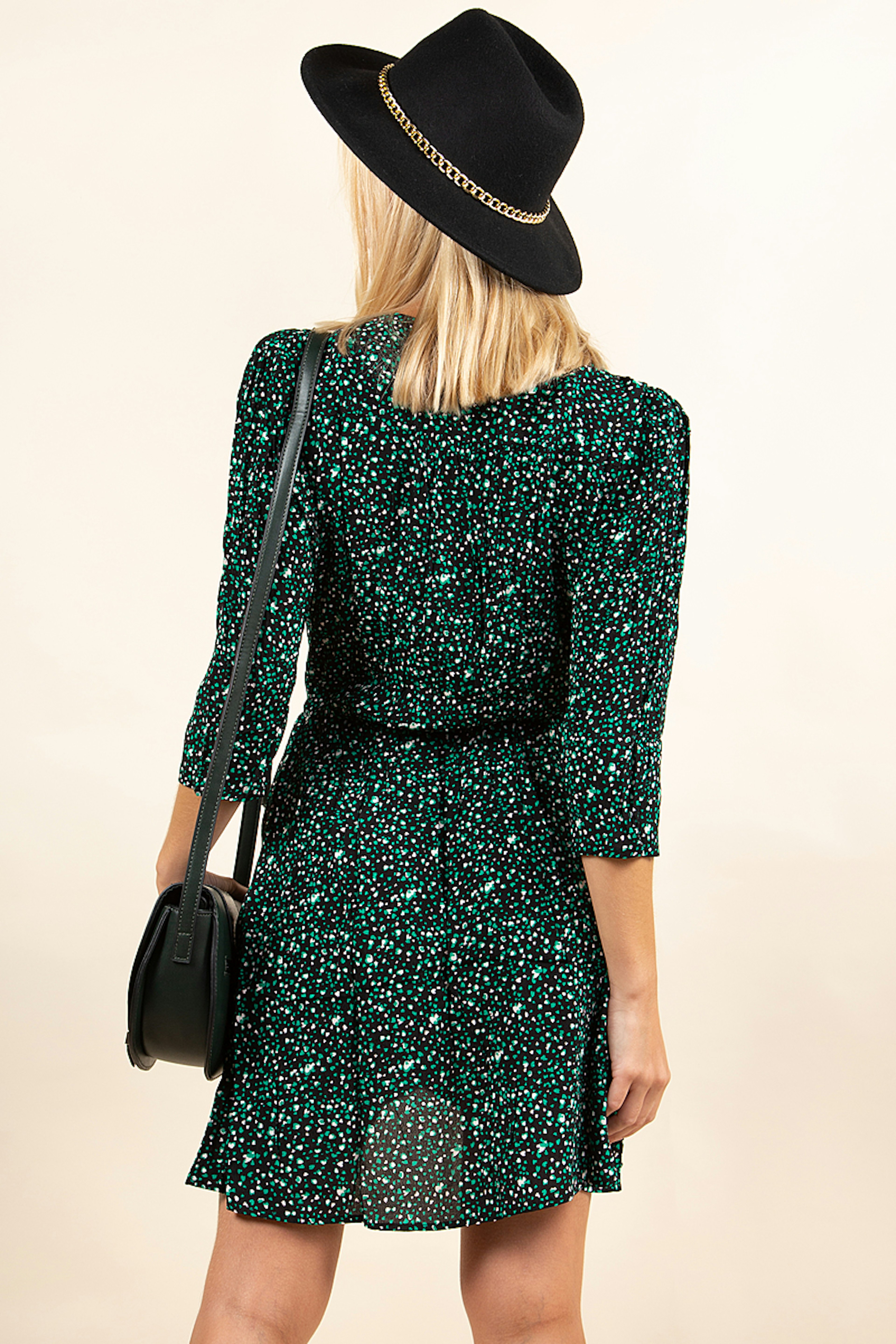 Dilemme est une robe ร  l'imprimรฉ colorรฉ est ultra pรฉtillant qui donne un coup de peps ร  une tenue dรฉcontractรฉe โ€ข Robe courte ร  manches ballons imprimรฉe verte sur fond noir โ€ข Taille รฉlastiquรฉe โ€ข Jupe asymรฉtrique โ€ข On vous conseille de la porter avec une ceinture en daim noir avec une grosse boucle pour un look rรฉtro tendance