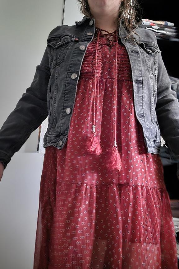 โ€œJolie robe fluide agrรฉable ร  porter. Elle ne marque pas la taille, mais avec une petite veste bleue (accordรฉe aux motifs des petites fleurs qu'on ne voit pas beaucoup sur la photo), รงa donne un look sympa.โ€