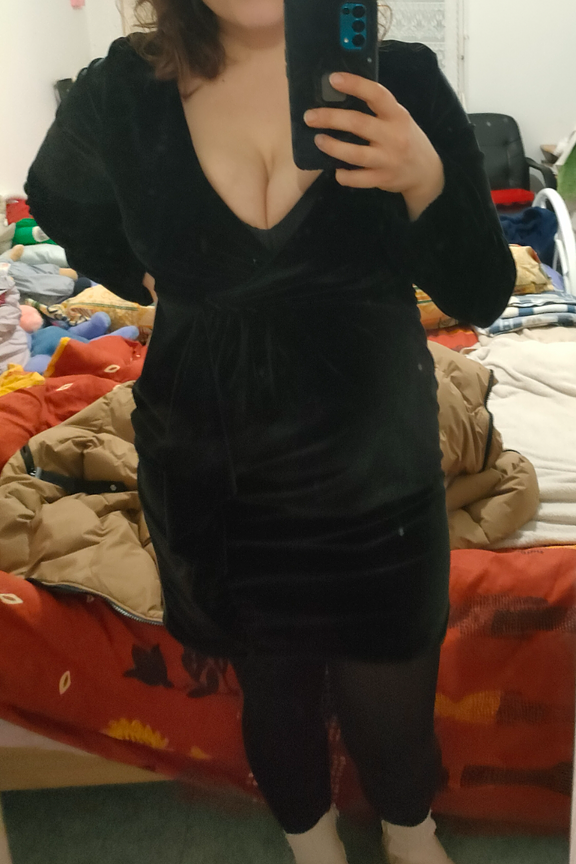 “J'ai retenté de prendre cette robe mais une taille au dessus et j'ai bien fait. Mais elle est très/trop sexy pour le bureau. Parfaite pour un dîner en amoureux”