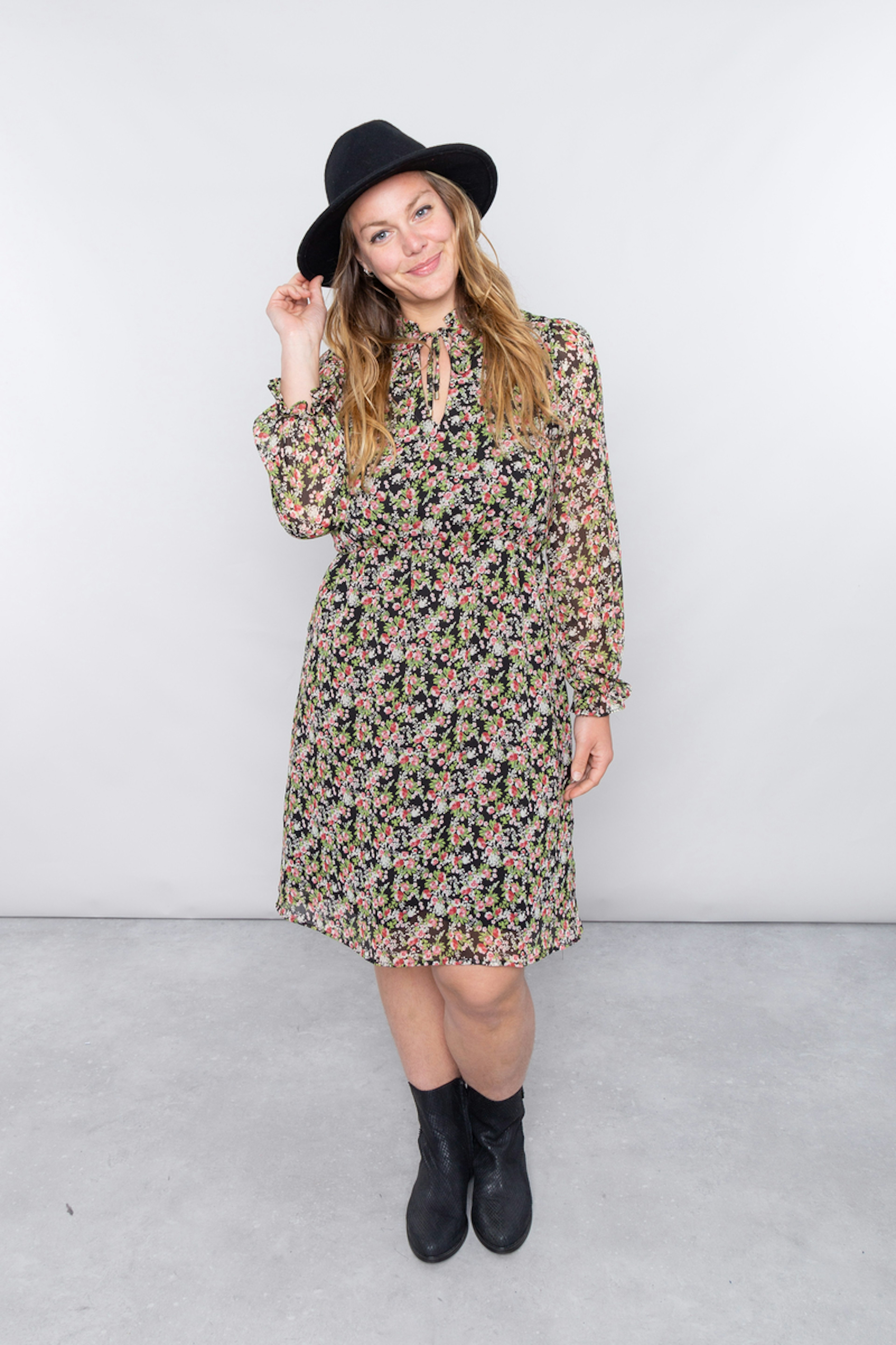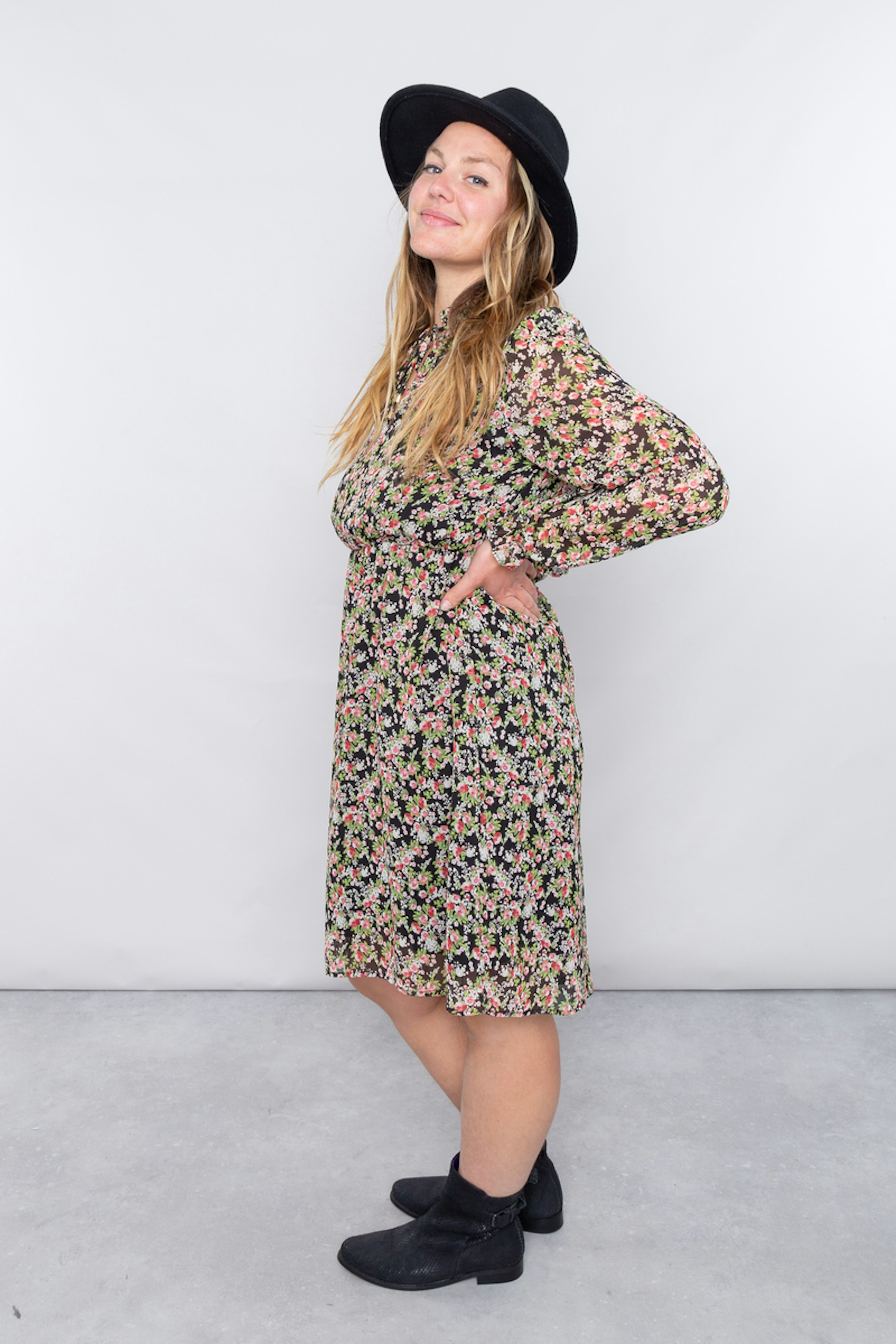 โJ'aime beaucoup le motif et la qualitรฉ de la robe. Mais je suis beaucoup trop serrรฉe au niveau du buste. Dommage.โ