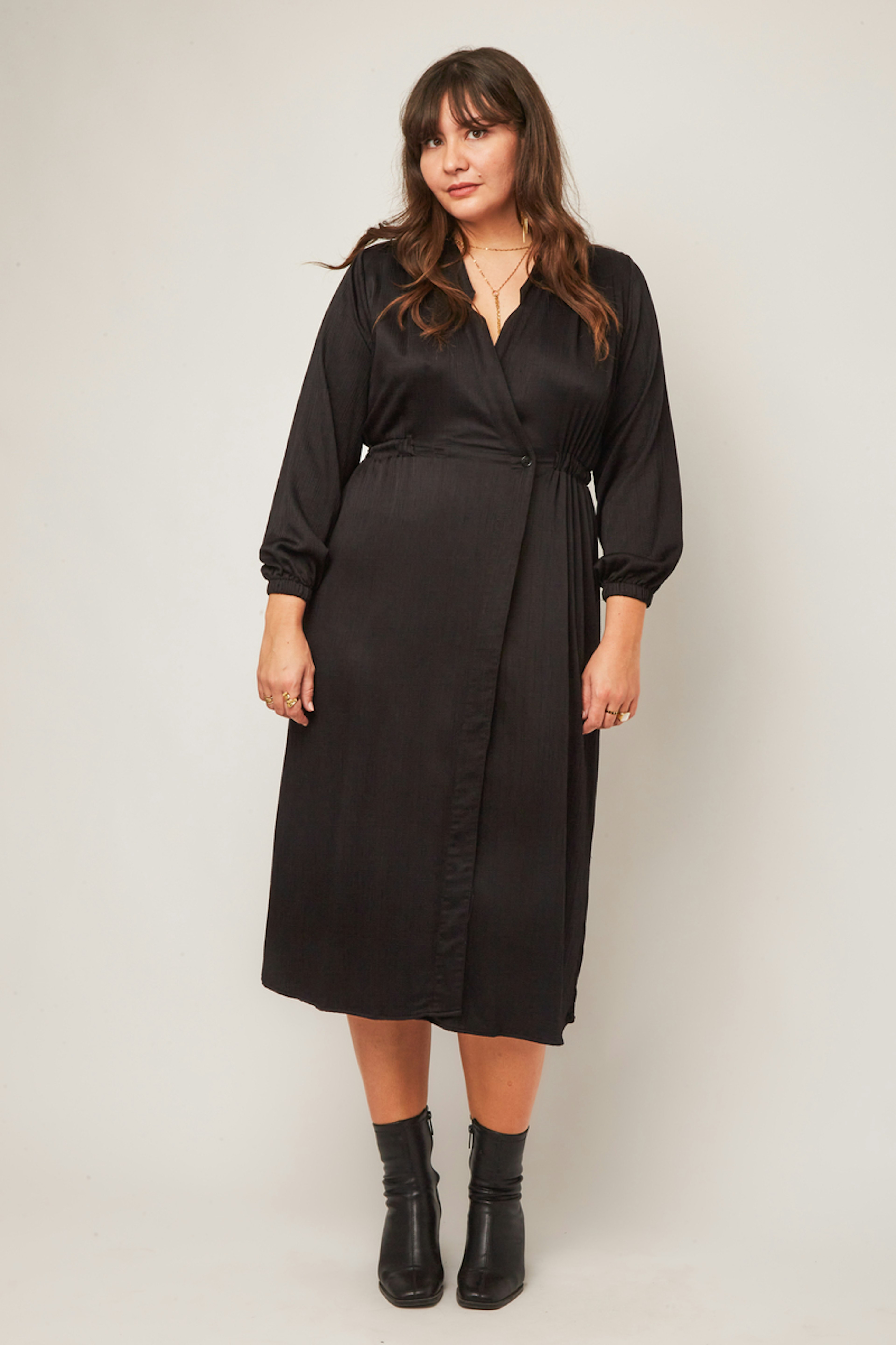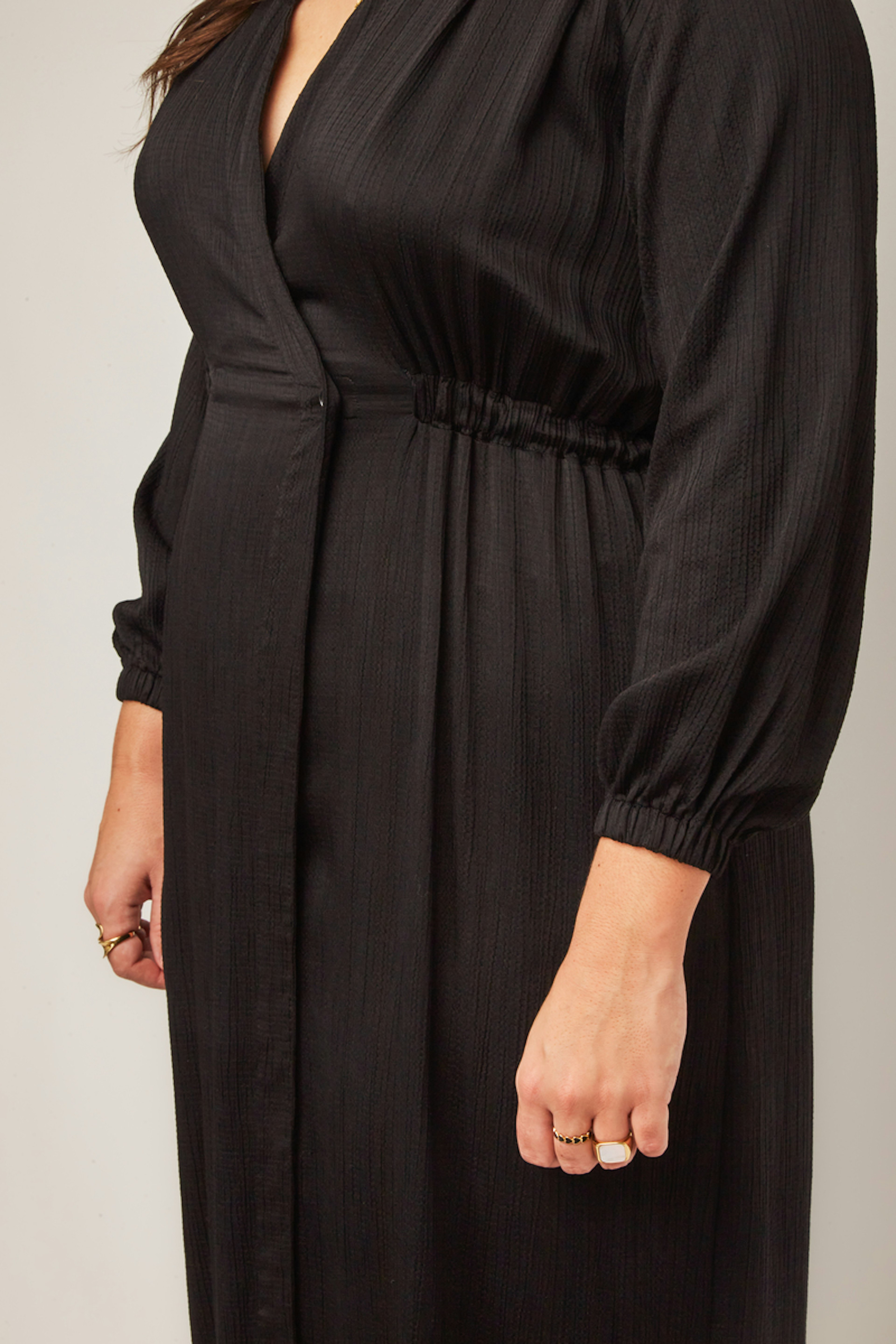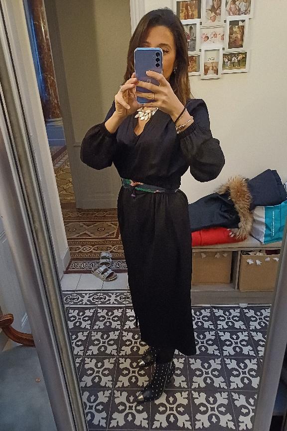 โข Fabrication et marque franรงaise โข Dรฉcolletรฉ cache-cลur โข Manches longues avec poignets โข Taille รฉlastiquรฉe cรดtรฉ devant et dos