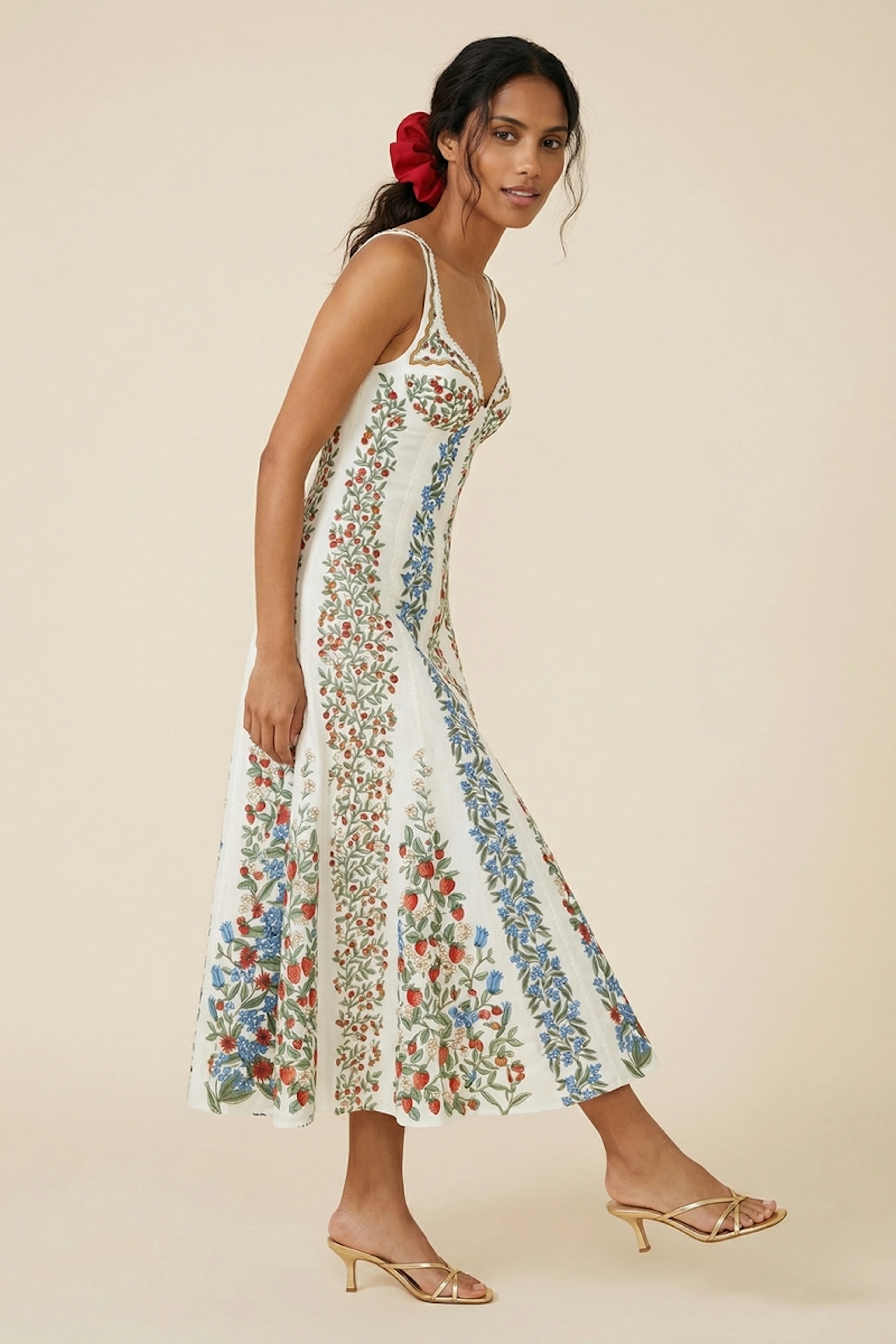 Pour une allure éclatante, associez cette robe avec des boucles d'oreilles dorées et des sandales à lanières. Idéale pour les journées estivales. • Robe longue • Coupe empire • Fines bretelles • Encolure décolletée • Motif floral