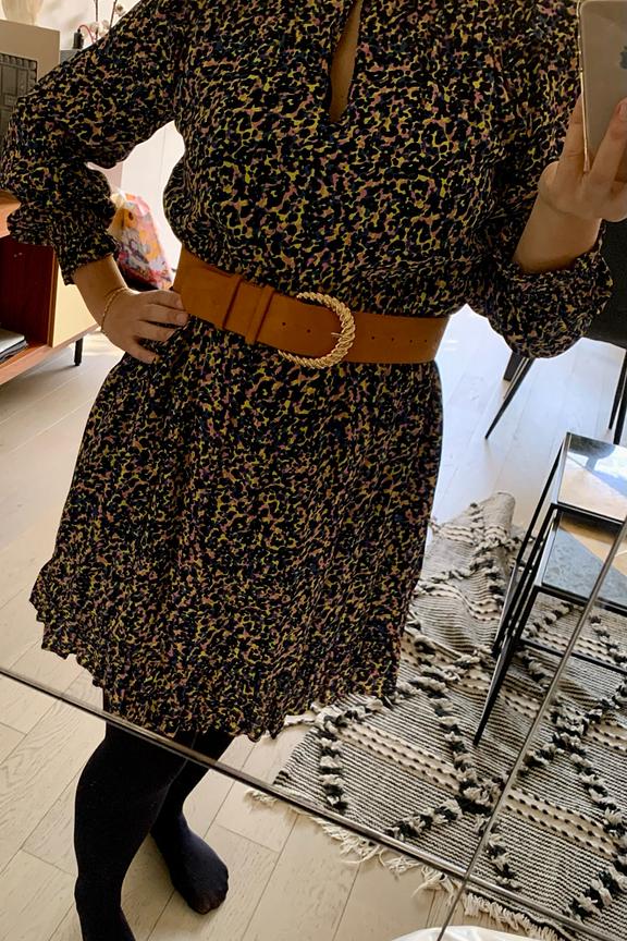 On aime la robe Gerry pour son imprimรฉ colorรฉ et sa forme รฉvasรฉe facile ร porter au quotidien. Ses volants au niveau des รฉpaules lui apportent une touche de fantaisie.
