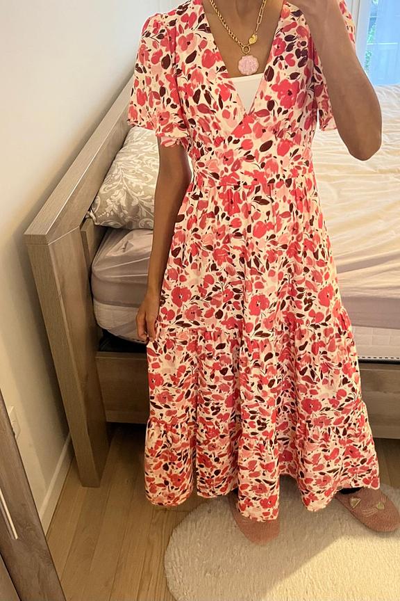 “Belle longueur. Belles couleurs et motifs. Très agréable à porter. Le décolleté est parfait. J'ai adoré la porter”