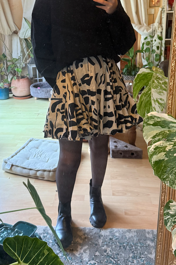 “Taille petit, mais tout de même très sympas. J’ouvre plus de bouton à la poitrine et met un petit top en dessous, pas fan des manche courte mais je la porte avec un pull et la c’est le top. Le plus ses poches !”