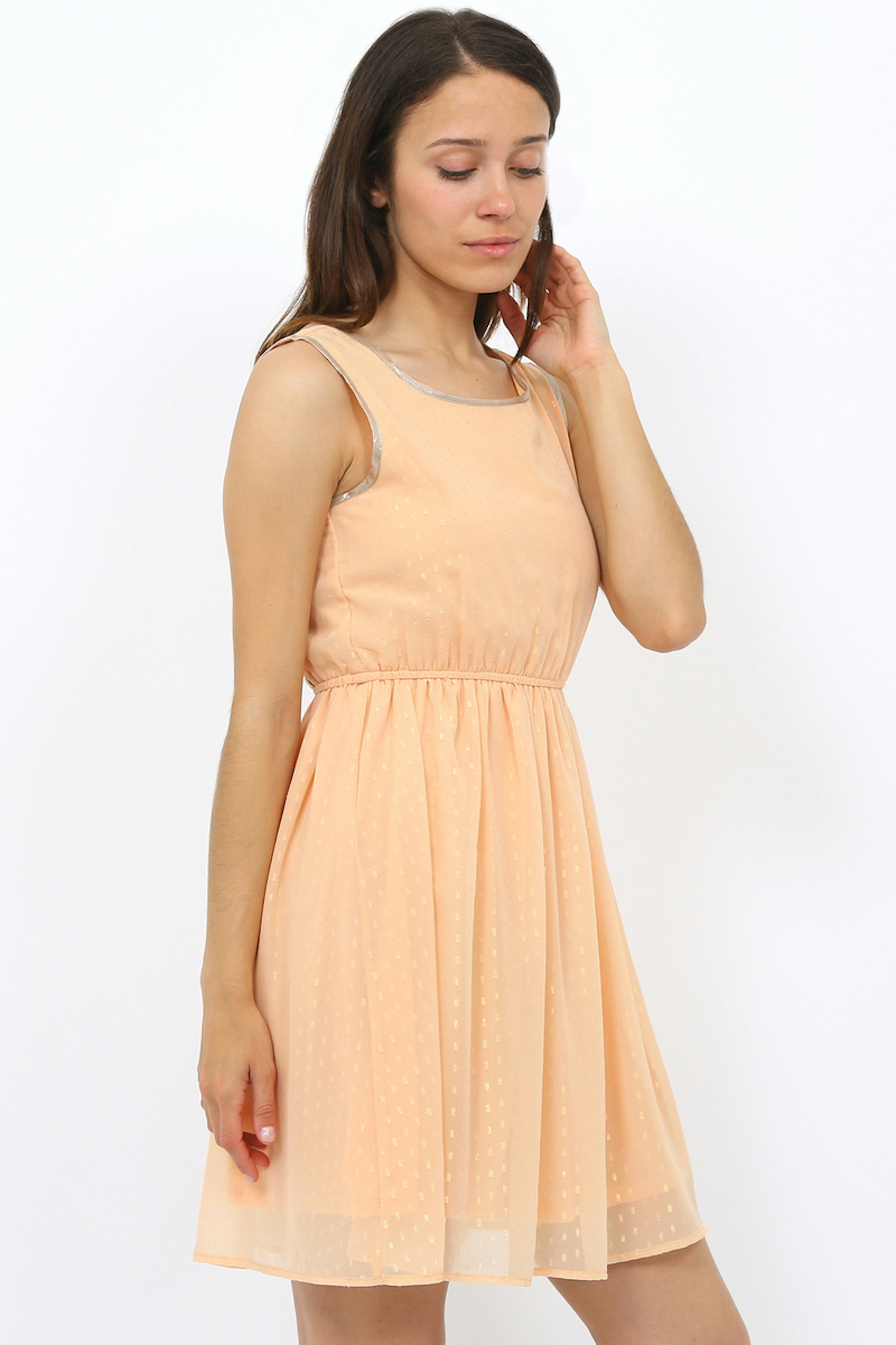 Robe manches courtes, dรฉcolletรฉe dans le dos et col rond, lรฉgรจrement cintrรฉe a la taille grรขce ร un รฉlastique.