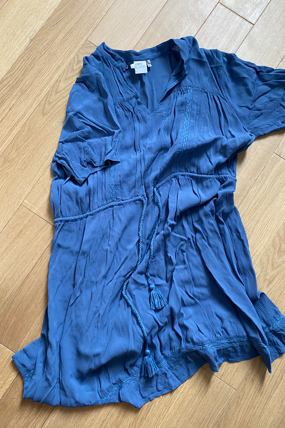 Craquez pour Ihcitro, cette robe bleue bohรจme. On aime son coloris unique et le dรฉtail sur le dรฉcolletรฉ de cette robe.