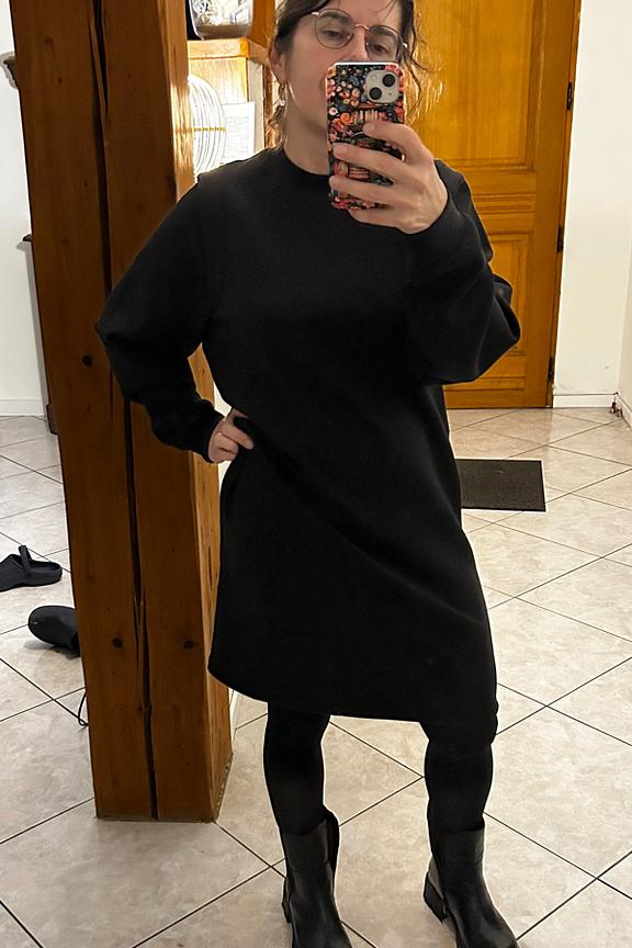 “Un beau basique. Belle coupe pour cette robe-sweat super confortable. Taille impeccable, pas aussi court que sur la photo”