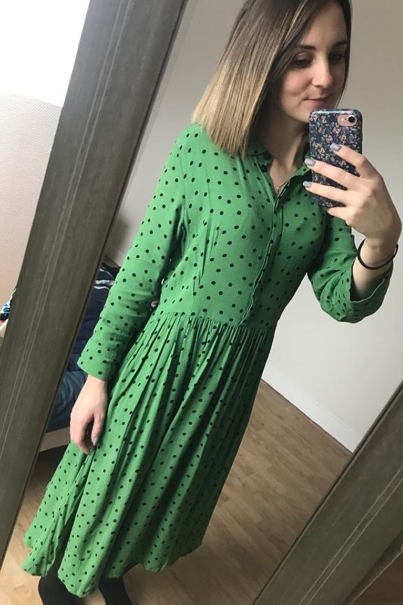 โLe vert est assez speciale mais pourquoi pas pour changer! La robe est bien taillรฉ รงa marque bien la tailleโ