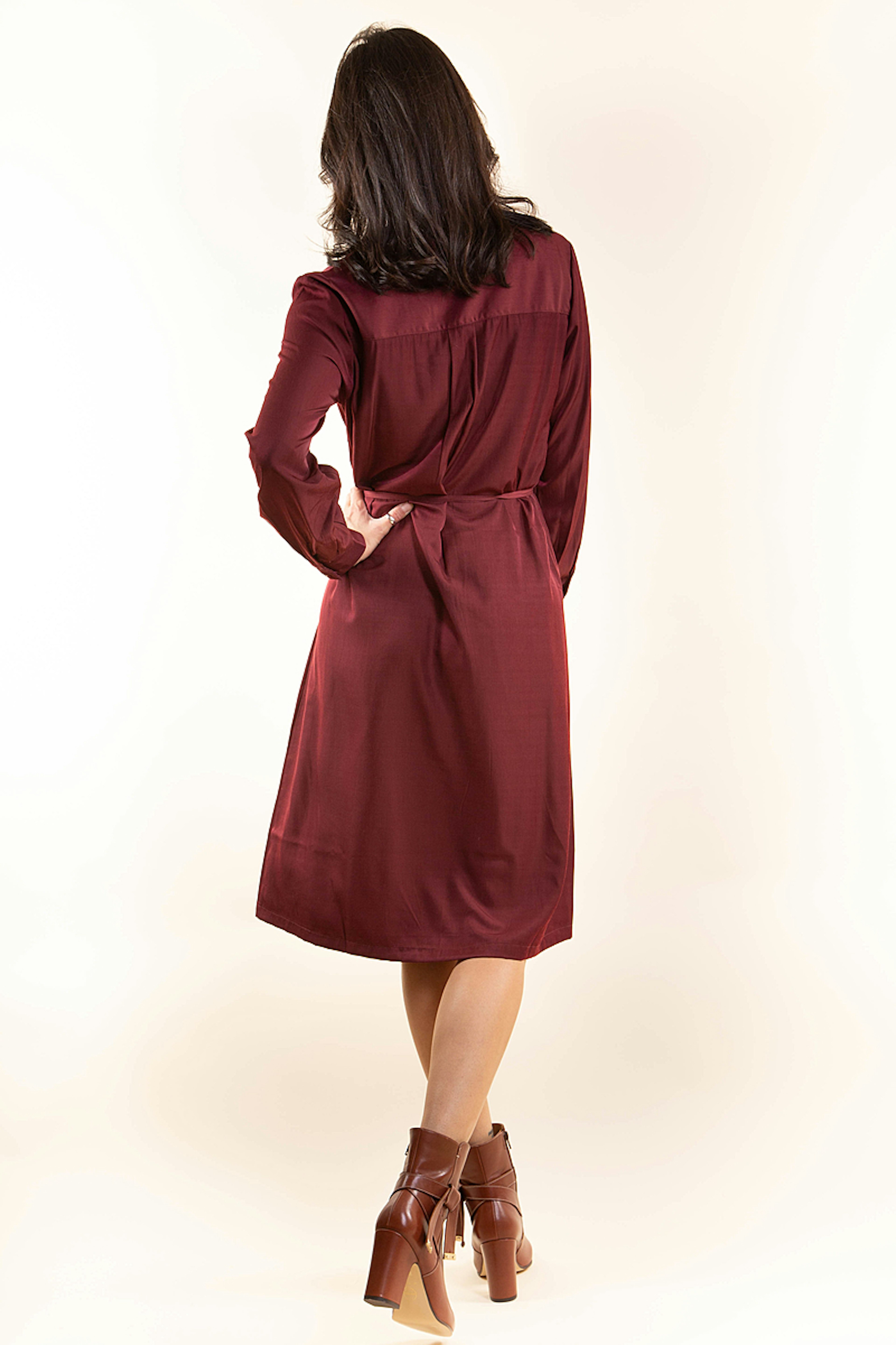 Coup de coeur pour la robe Isobel ! Portez-la avec une jolie paire de bottes camel et une ceinture ร la taille.