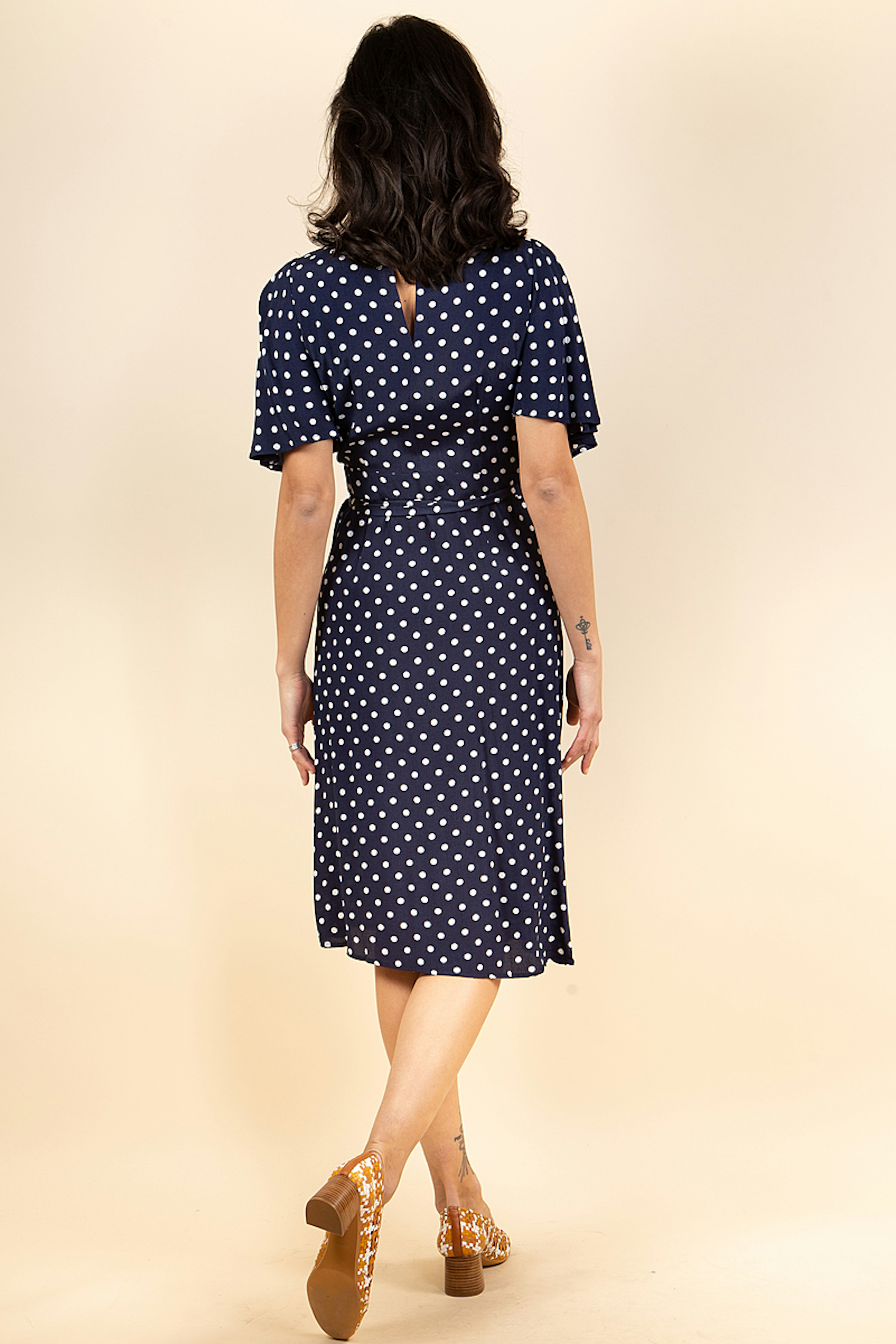 Coup de coeur pour la robe imprimรฉe ร pois Issy. On aime son tissu fluide, son imprimรฉ rรฉtro et ses manches ultra fรฉminines.