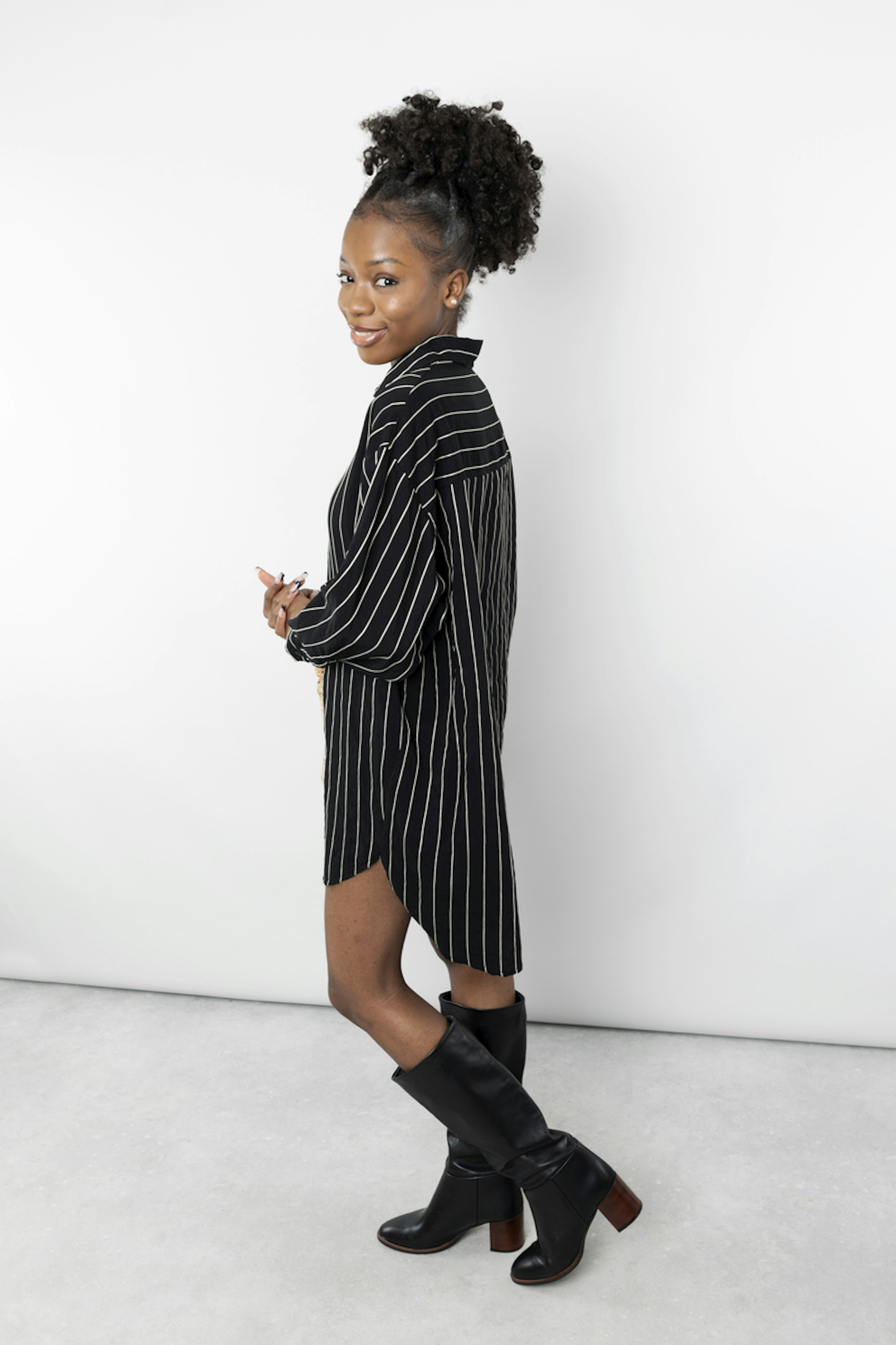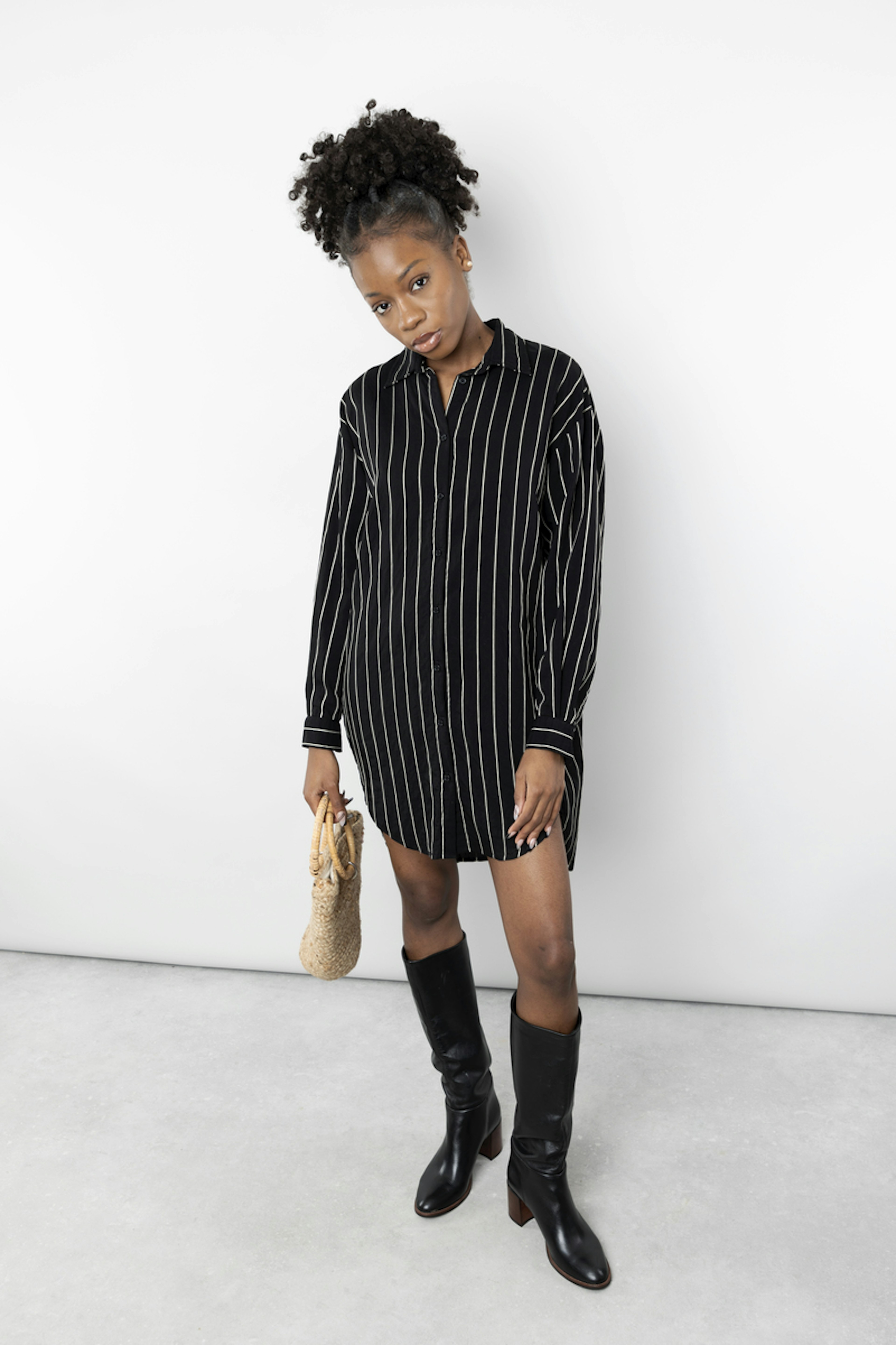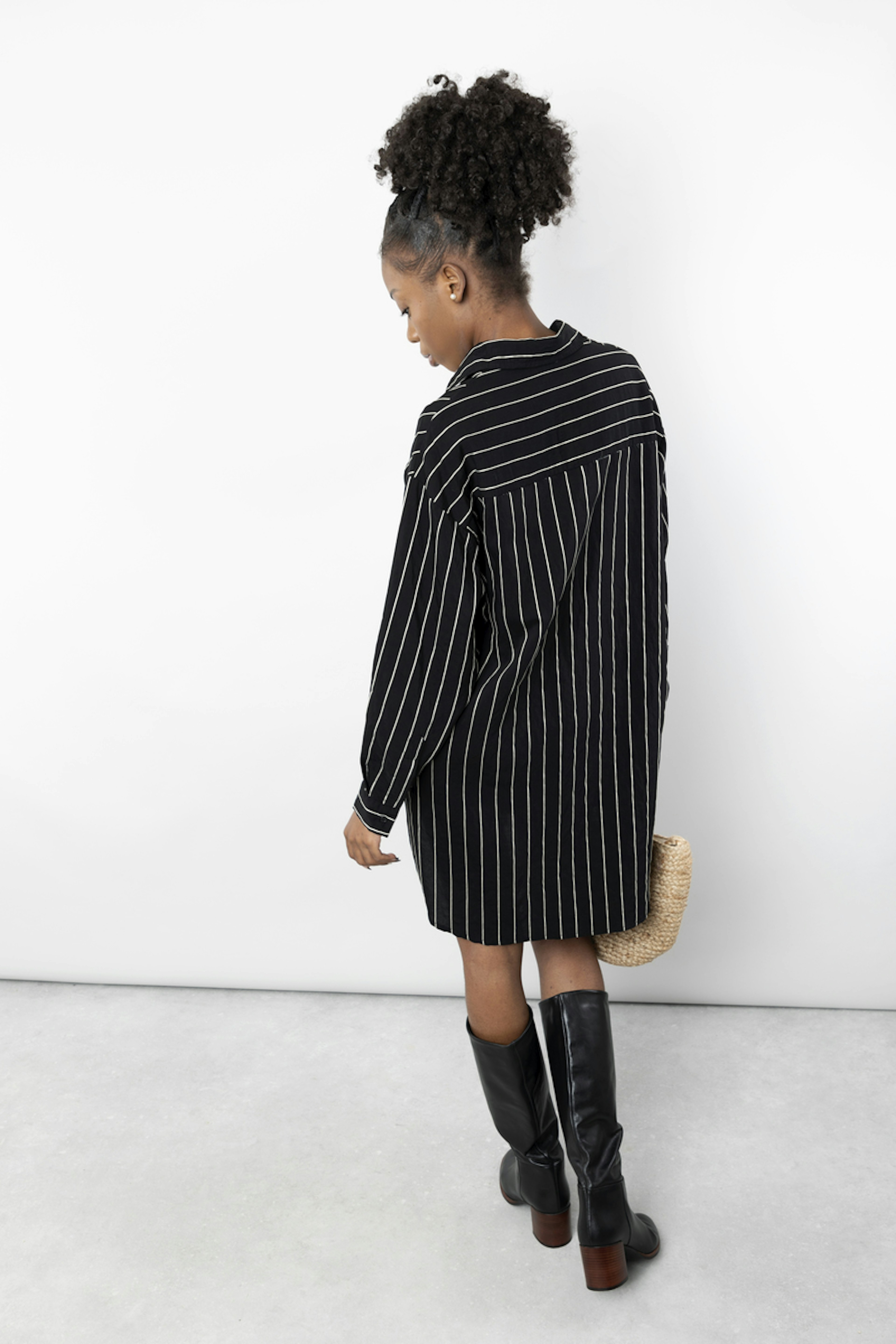 โข La robe chemise noire ร rayures blanches, Janita, est la piรจce idรฉale pour un look chic et dรฉcontractรฉ โข Sa coupe asymรฉtrique, plus longue ร l'arriรจre, lui donne un look raffinรฉ et moderne โข Les rayures blanches apportent une touche de fraรฎcheur ร cette robe noire classique โข Cette robe chemise noire ร rayures blanches est idรฉale pour les occasions dรฉcontractรฉes comme pour les soirรฉes plus formelles โข Elle se mariera ร merveille avec des escarpins pour un look plus habillรฉ ou des baskets pour un look plus dรฉcontractรฉ