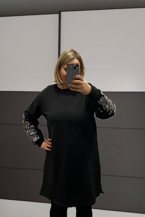 Ajoutez des bottines et un collier pour une touche moderne; parfait pour l'hiver. โข Robe droite โข Manches longues โข Motif imprimรฉ floral โข Col rond โข Coupe confortable
