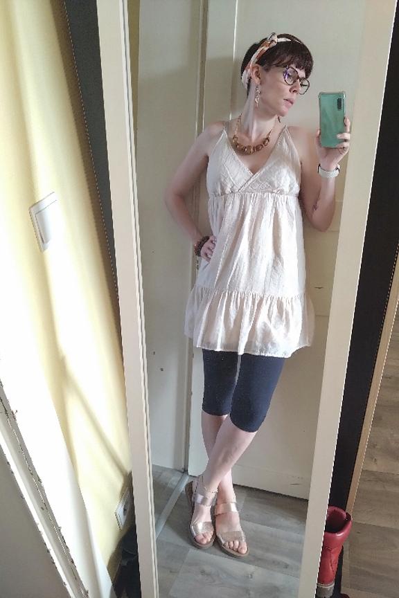 “La taille est bonne en haut mais elle est vraiment trop courte, sauf avec un short peut être. Impossible à porter, sauf en nuisette !”