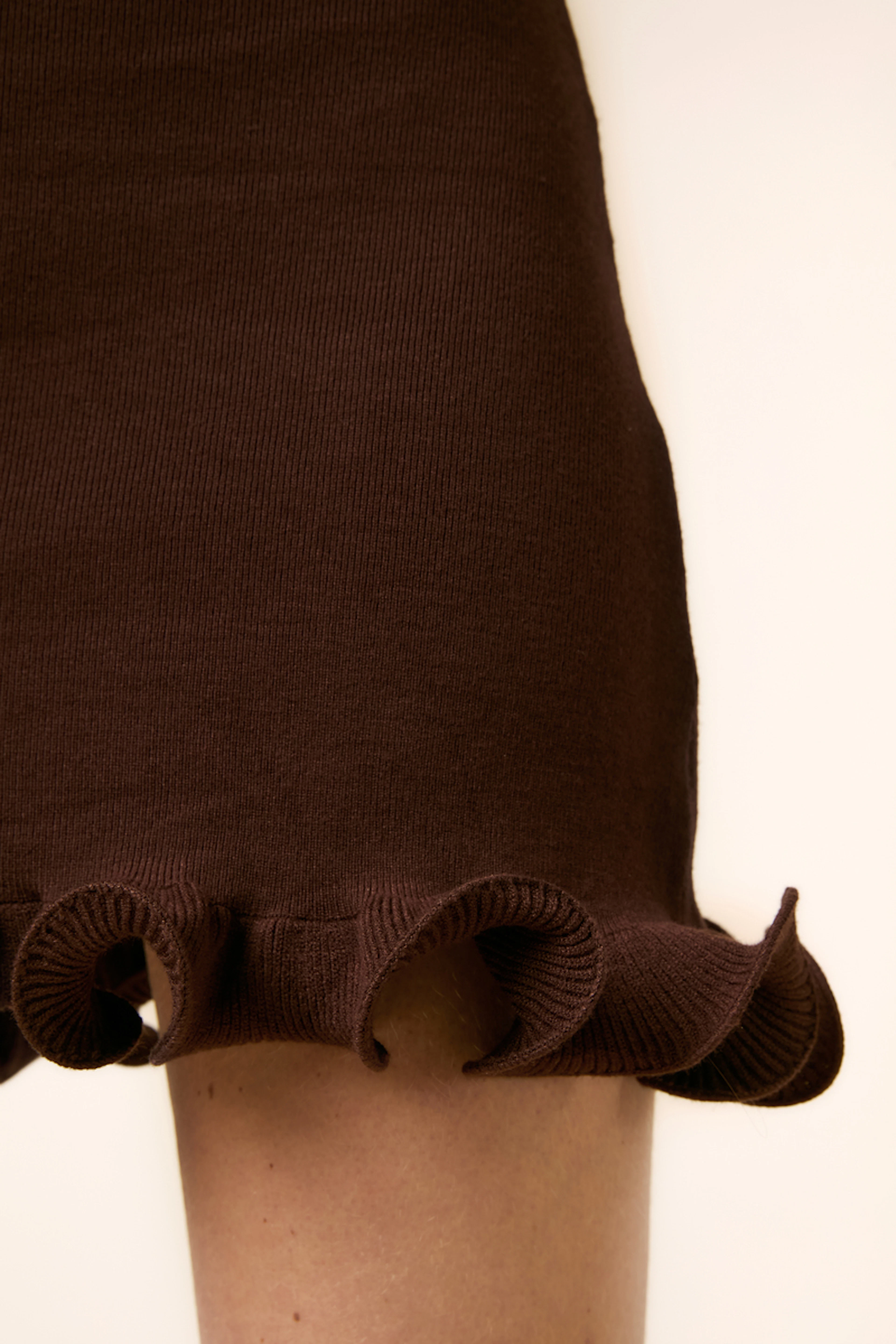 Associez cette robe élégante à des sandales dorées et un sac en osier pour un look estival parfait. • Coupe près du corps • Col bateau • Manches longues • Volants aux poignets et à l'ourlet • Robe courte