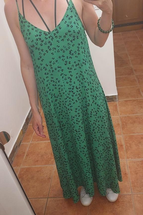 โข Robe Karla โข Robe longue ร bretelles spaghettis, dans un imprimรฉ exclusif G&M โข Lien au dos โข Bretelles ajustables