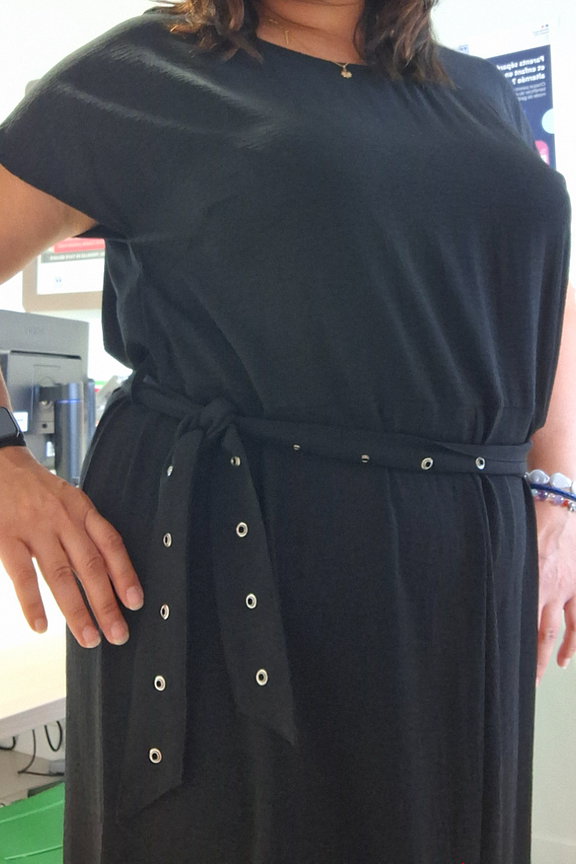 Associez cette robe élégante à des escarpins et des boucles d'oreilles scintillantes. Idéale pour sublimer votre silhouette à chaque occasion. • Robe mi-longue • Manches courtes • Encolure bateau • Ceinture ajustable • Fente avant subtile