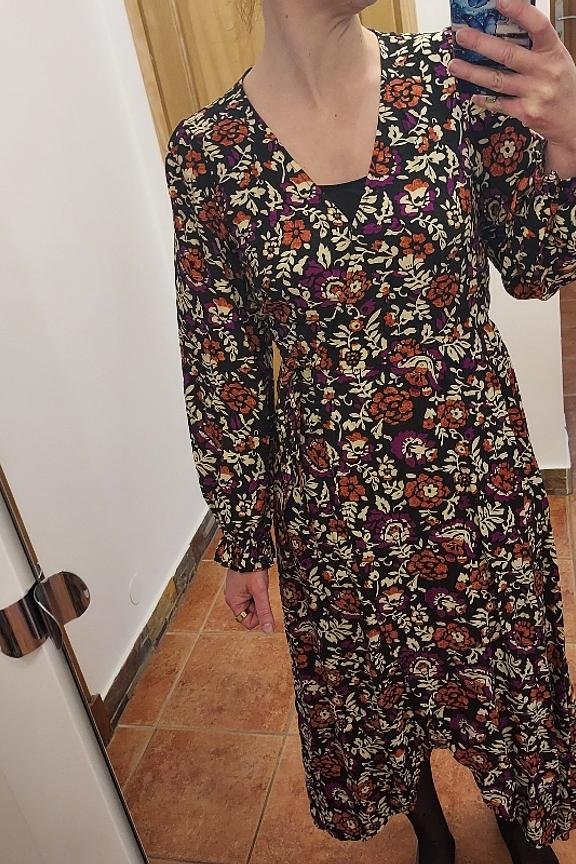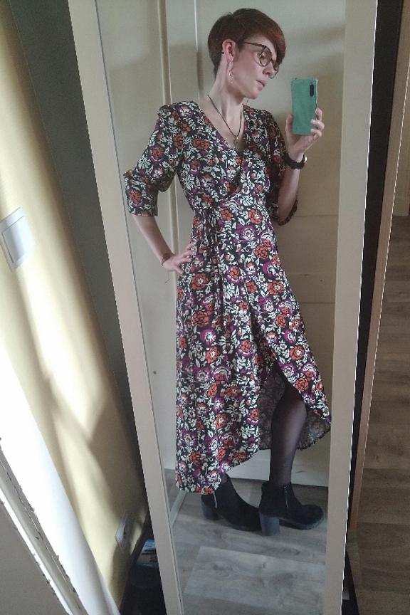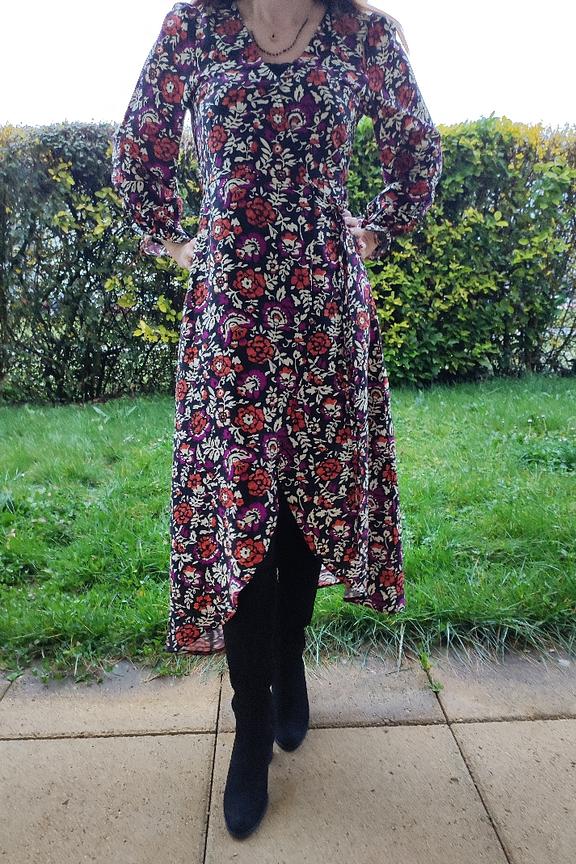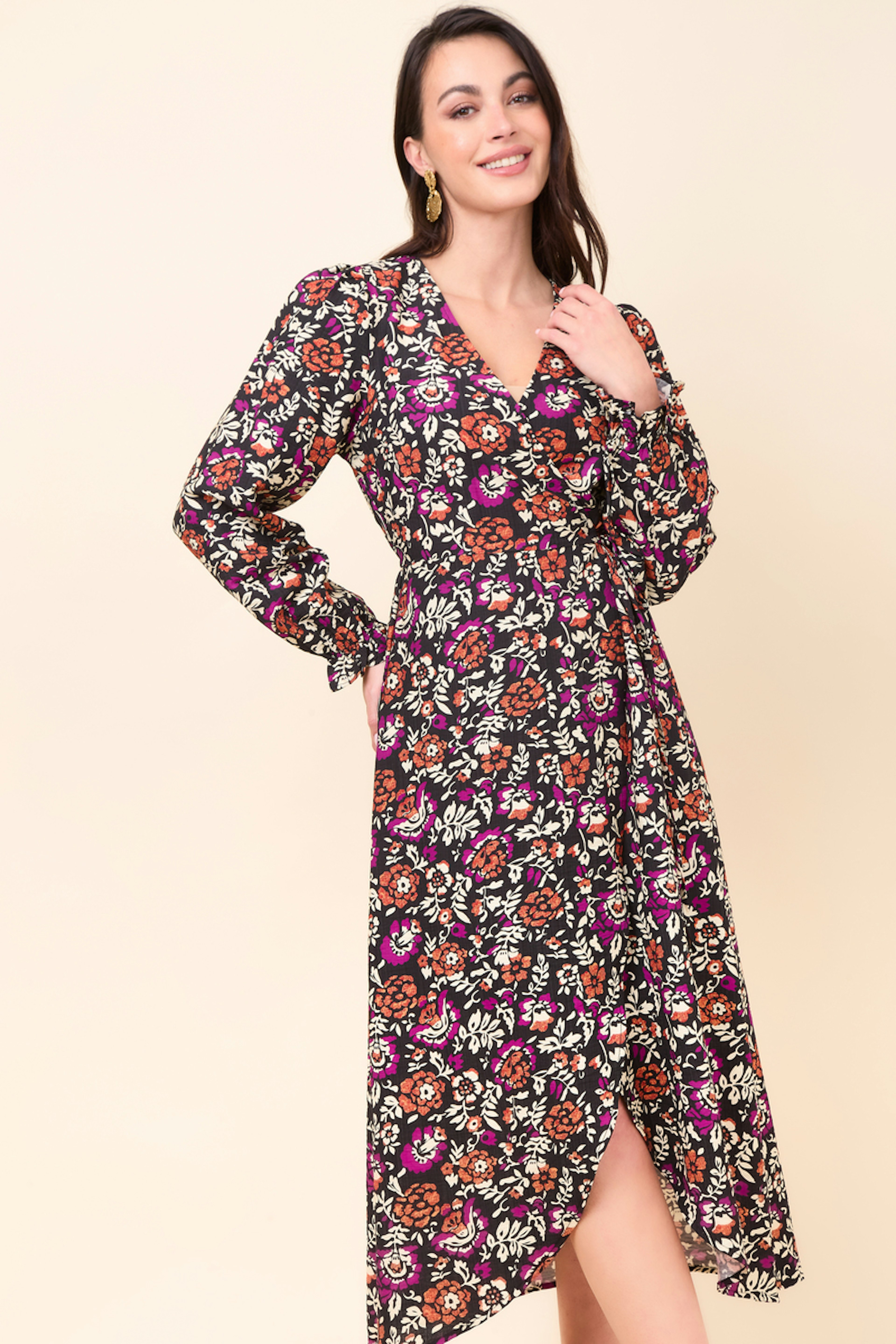 Ajoutez des bottes en cuir et une écharpe pour les journées fraîches. Parfaite pour toutes les occasions festives! • Robe portefeuille • Décolleté en V • Manches longues • Taille ajustée • Motif floral