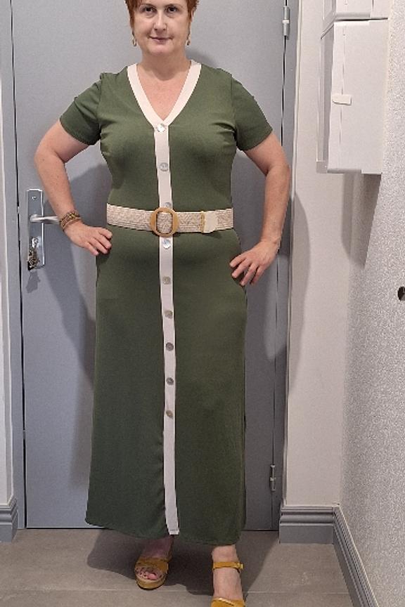 Pour une รฉlรฉgance tout en sobriรฉtรฉ, associez cette robe ร des sandales ร talons en bois et un sac en paille pour un look estival chic. Idรฉale pour les journรฉes ensoleillรฉes. โข Robe longue โข Manches courtes โข Boutonnage central contrastant โข Encolure en V contrastante โข Coupe droite โข TU grande taille convient du 42 au 48