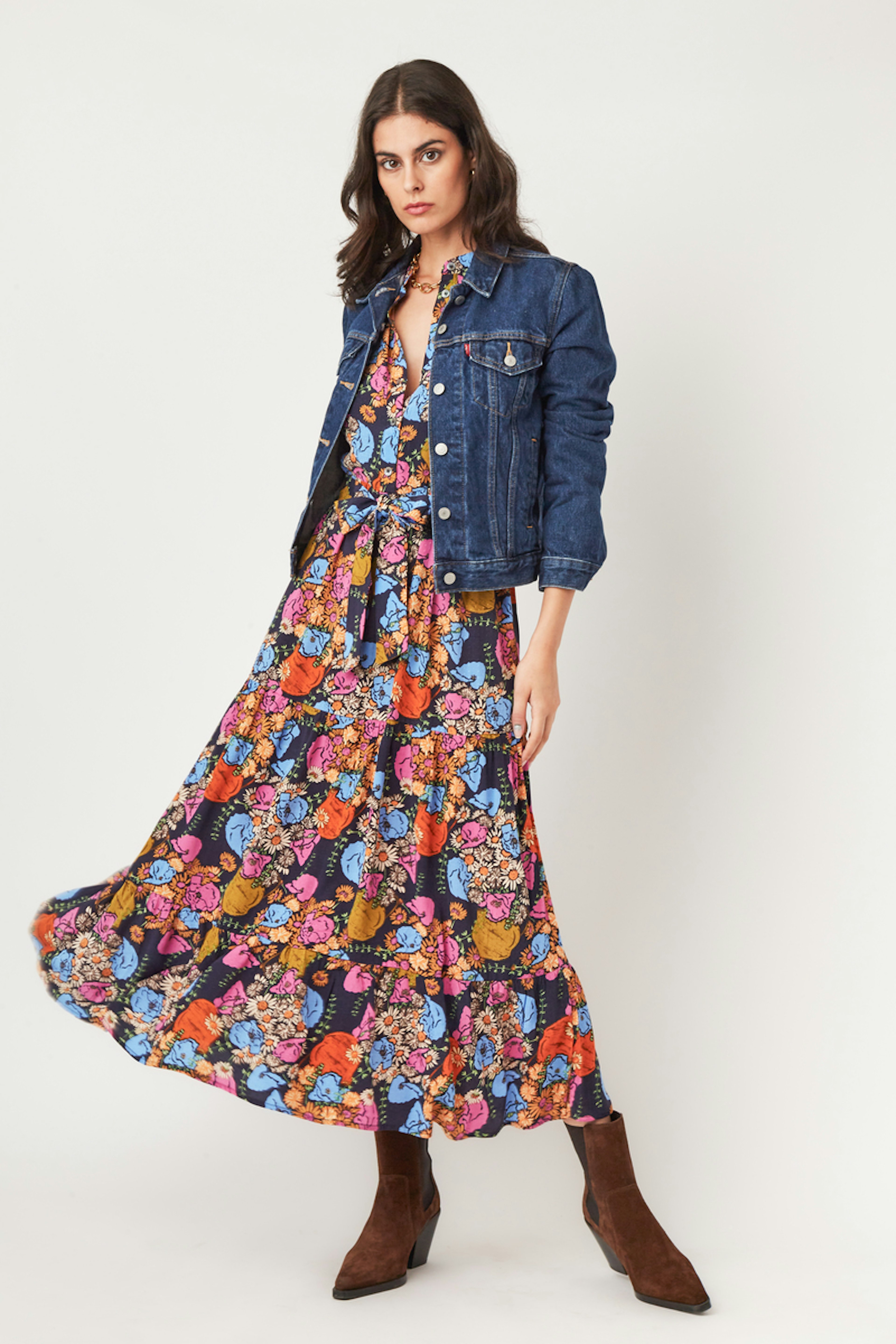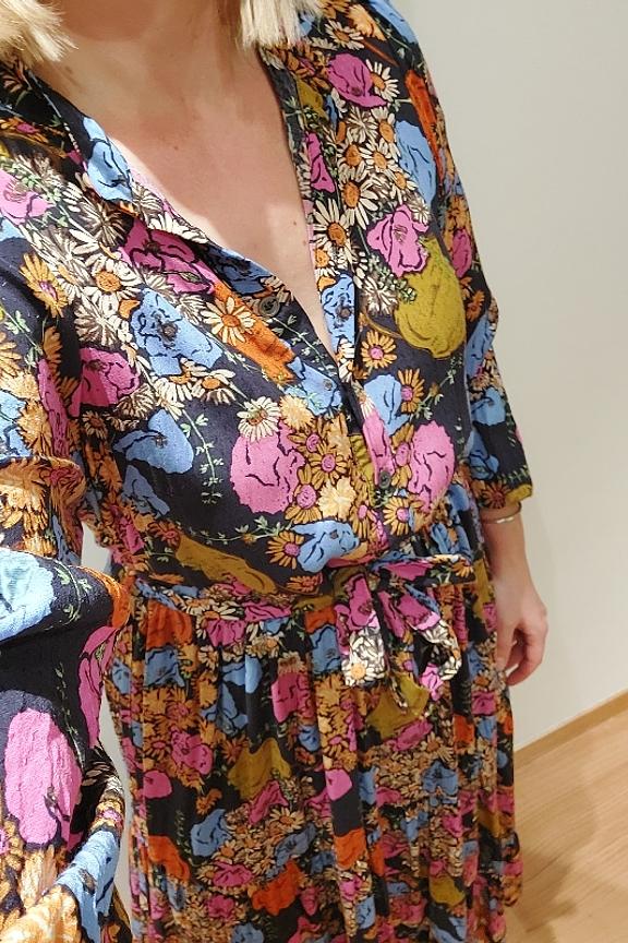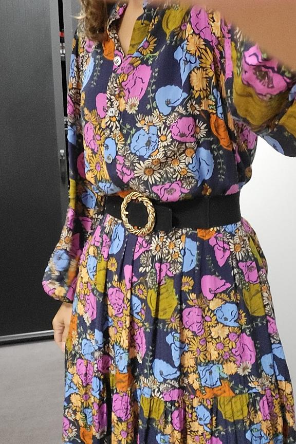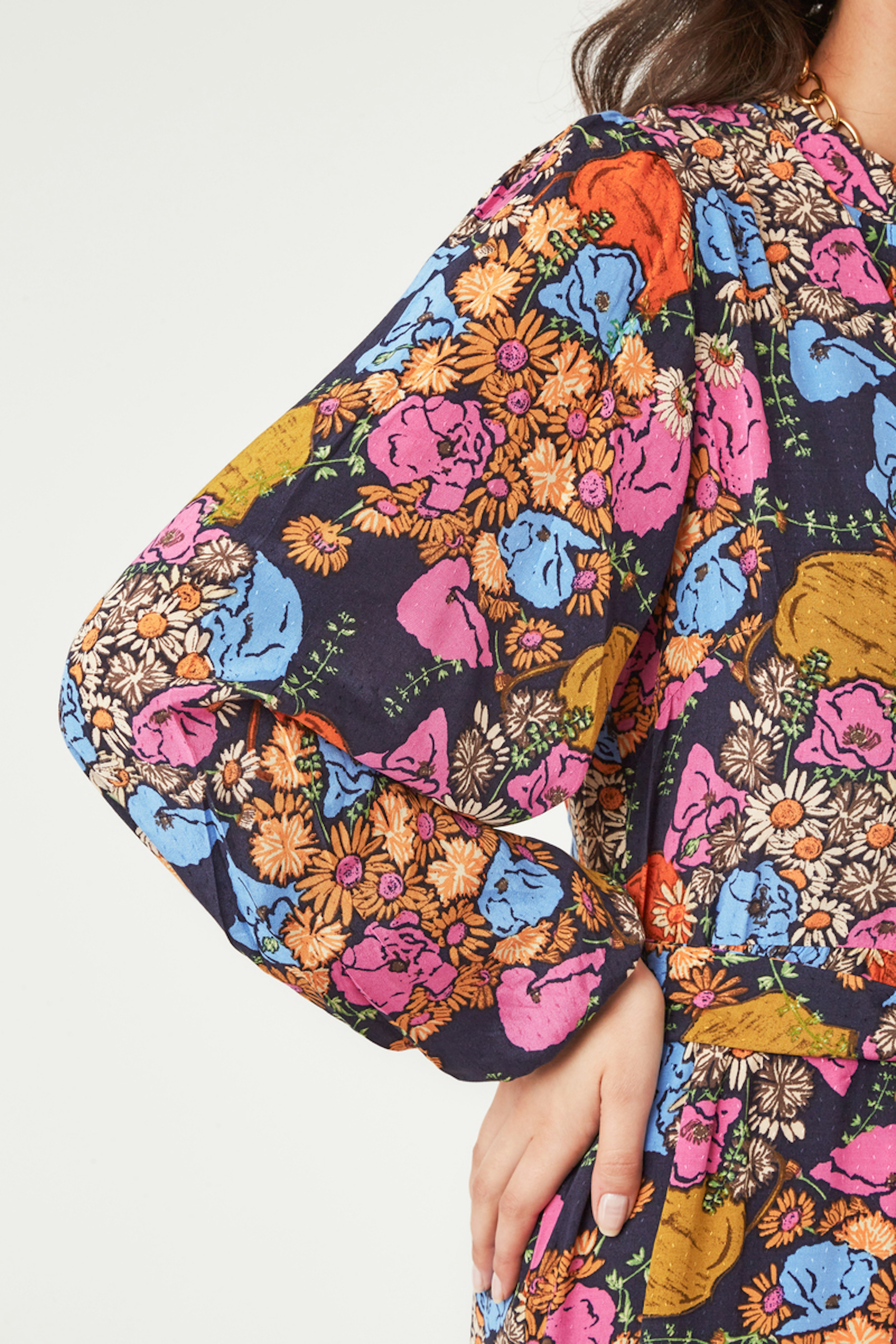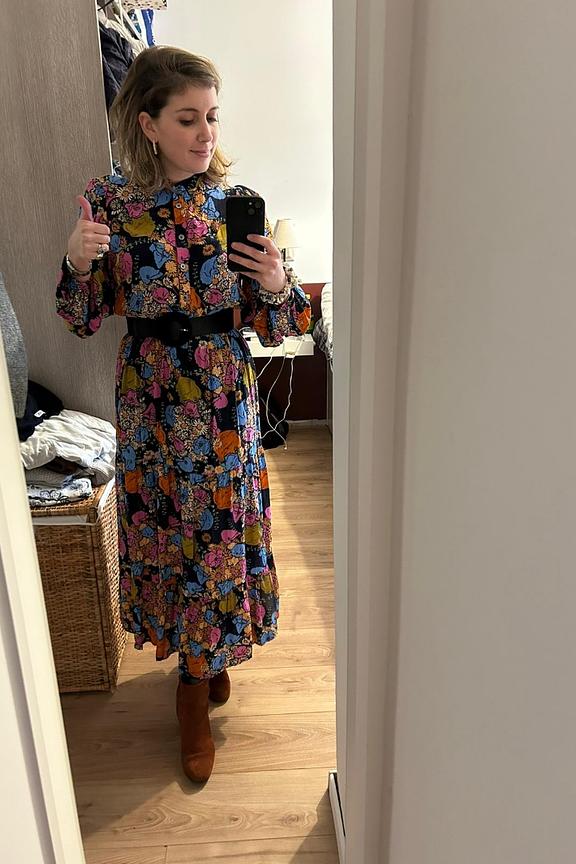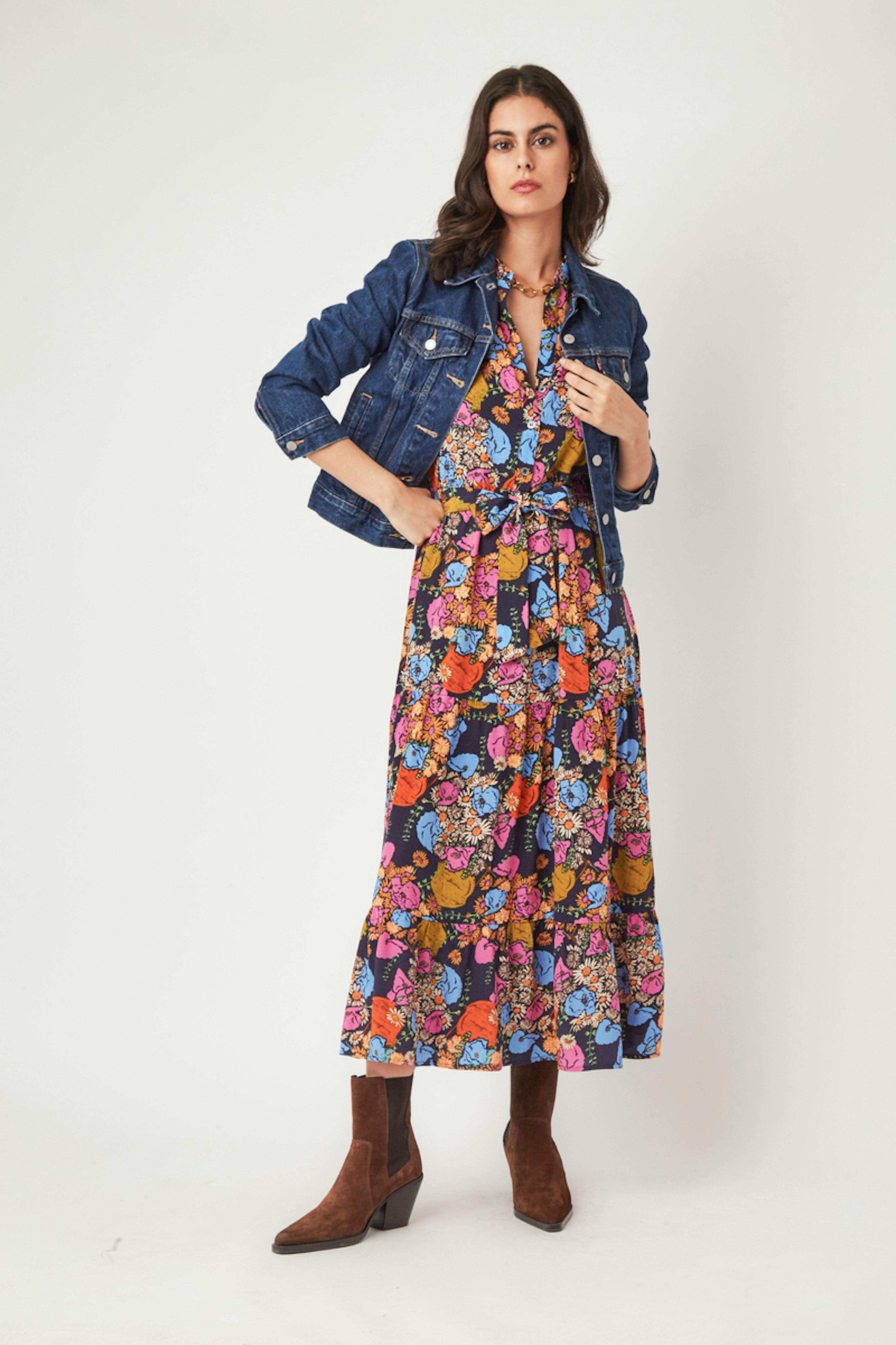 โ€ข Robe midi ร  manches longues โ€ข Manches ballons โ€ข Fermeture poitrine ร  boutons โ€ข Passants et ceinture amovible ร  nouer ร  la taille โ€ข Imprimรฉ Mano Mani(Design par FRNCH)