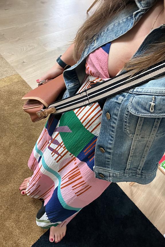 Pour un look estival inoubliable, associez cette robe ร des sandales dorรฉes et un sac en osier ! Parfaite pour la saison chaude. โข Robe longue imprimรฉe โข Taille cintrรฉe โข Dรฉcolletรฉ portefeuille en V โข Sans manches โข Ruban ร nouer โข Imprimรฉ graphique multicolore