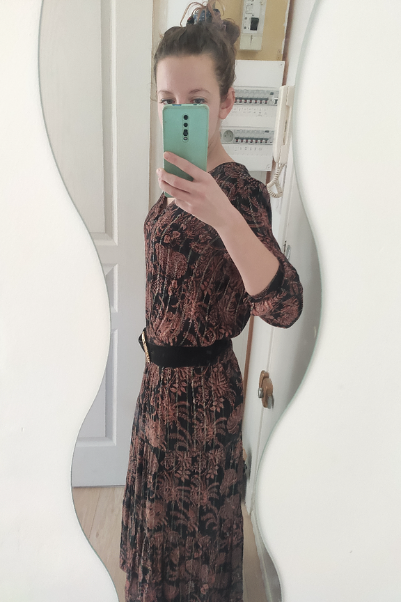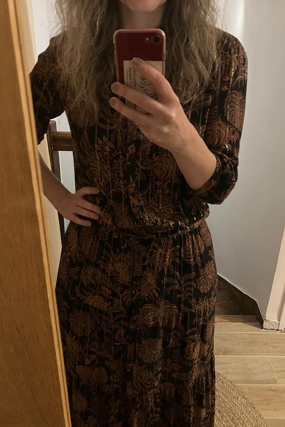 โTrรจs jolie rendu pour cette robe longue. La couleur est magnifique. Lรฉgรจrement ouverte sur le devant! J adore!! Portรฉe avec une ceinture mais la robe marque bien la taille sans. Mais je trouve รงa plus sympa.โ