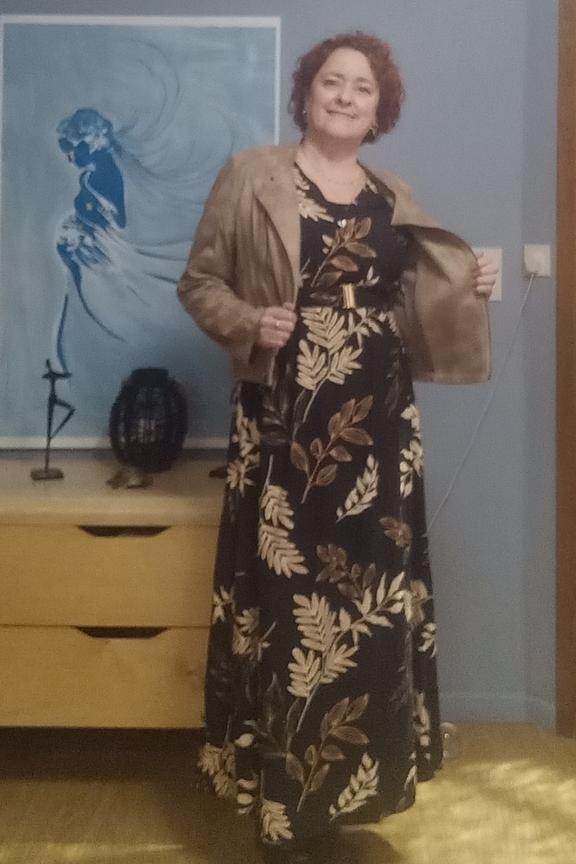 โTrรจs jolie et longue robe. Large dรฉcolletรฉ donc porter un caraco ou t-shirt dessous. Jolis tons automnaux!โ