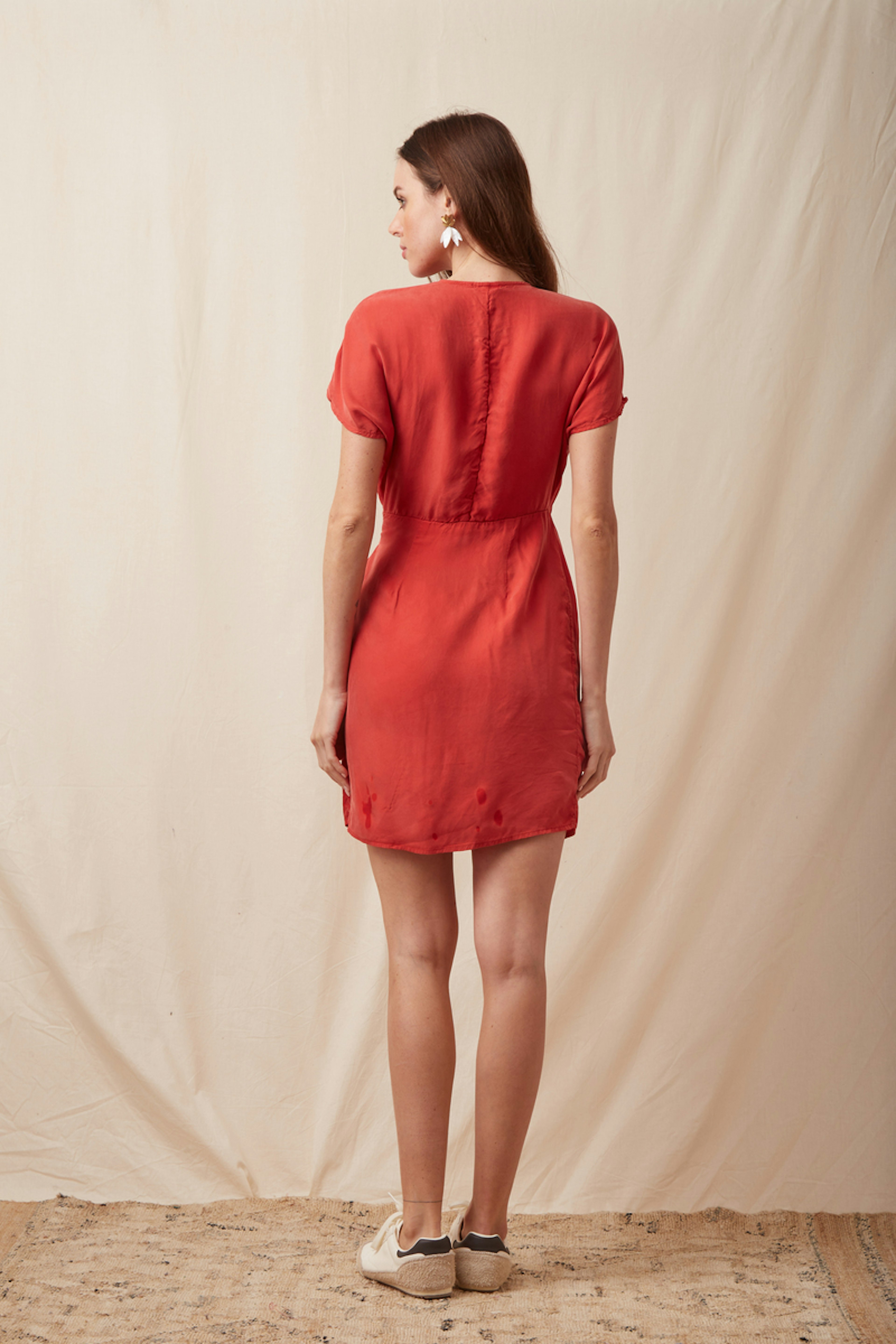โTrรจs jolie robe pour lโรฉtรฉ, rouge orangรฉ, tissu viscose lรฉger aux reflets chatoyants comme de la soie. Longueur parfaite pour mon 1,65 m. Petit bรฉmol : cโest une vraie robe porte-feuille ร la coupe flatteuse mais le tissu lรฉger et soyeux glisse et vole facilement ! Petite รฉpingle ร la poitrine fort utile pour รฉviter un dรฉcolletรฉ panoramique. Prรฉvoir un repassage soigneux car le tissu se froisse trรจs facilement.โ