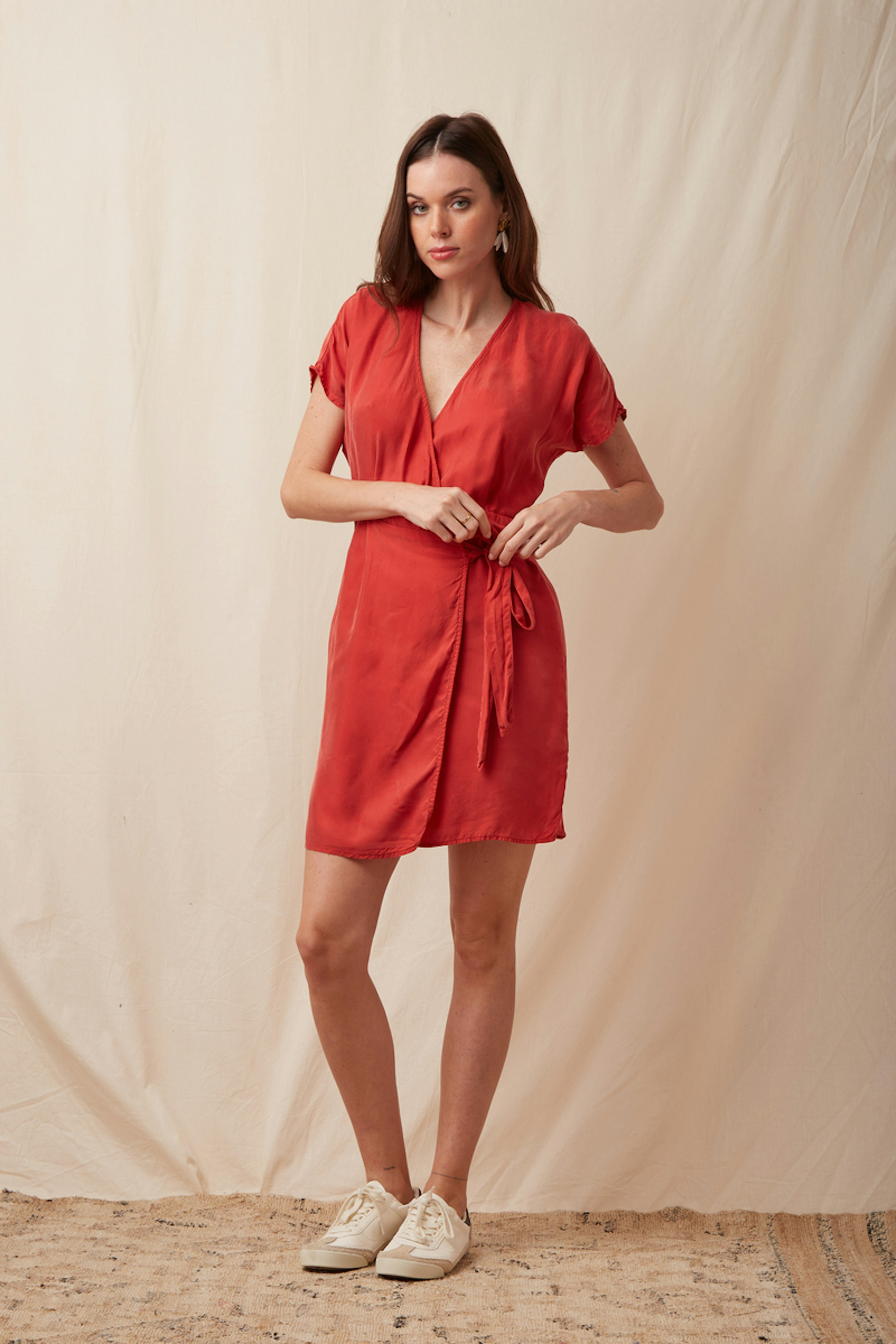 Accordez cette robe portefeuille avec des sandales fines pour une รฉlรฉgance estivale, ou des baskets pour une touche dรฉcontractรฉe. Parfaite pour toute saison. โข Robe portefeuille โข Ceinture ร nouer โข Encolure cache-cลur โข Manches courtes โข Teinte รฉclatante