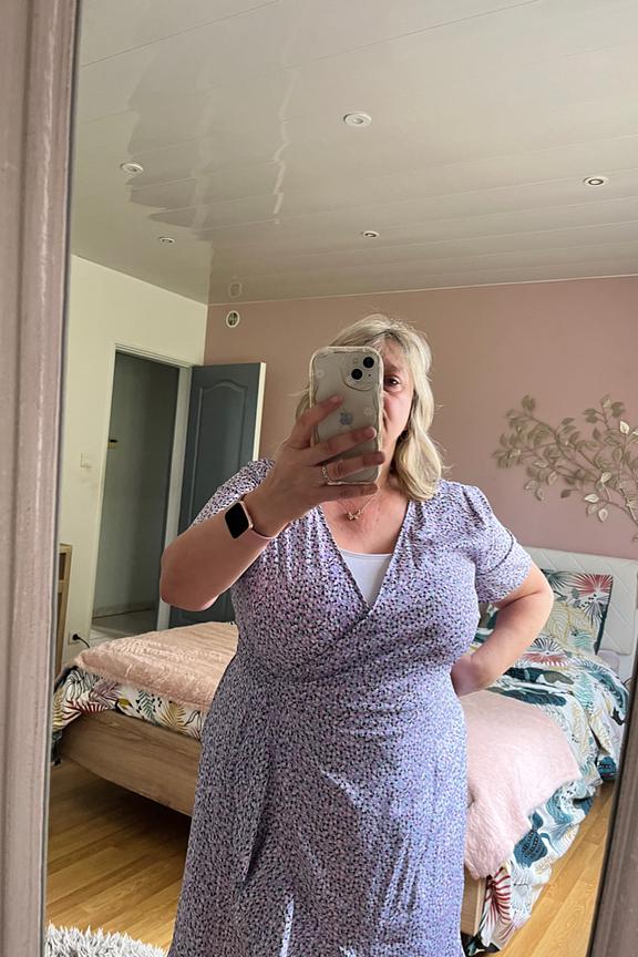 โTrรจs jolie et confortable robe printaniรจre. Flatteuse sur les courbes. Est un peu plus violette quโen nโen a lโair en photo.โ