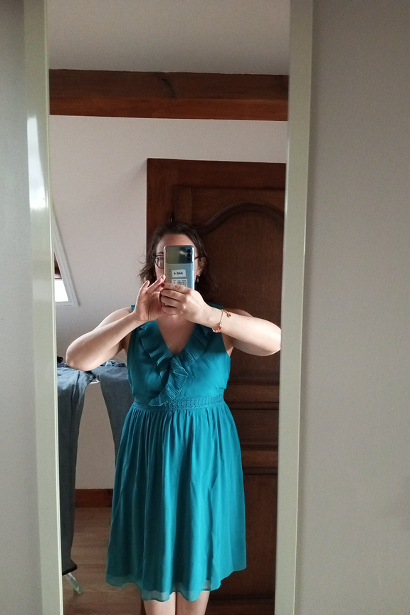 โUn peu dรฉรงue par la coupe de la robe. Taille un peu haute et dรฉcolletรฉ un peu serrรฉโ