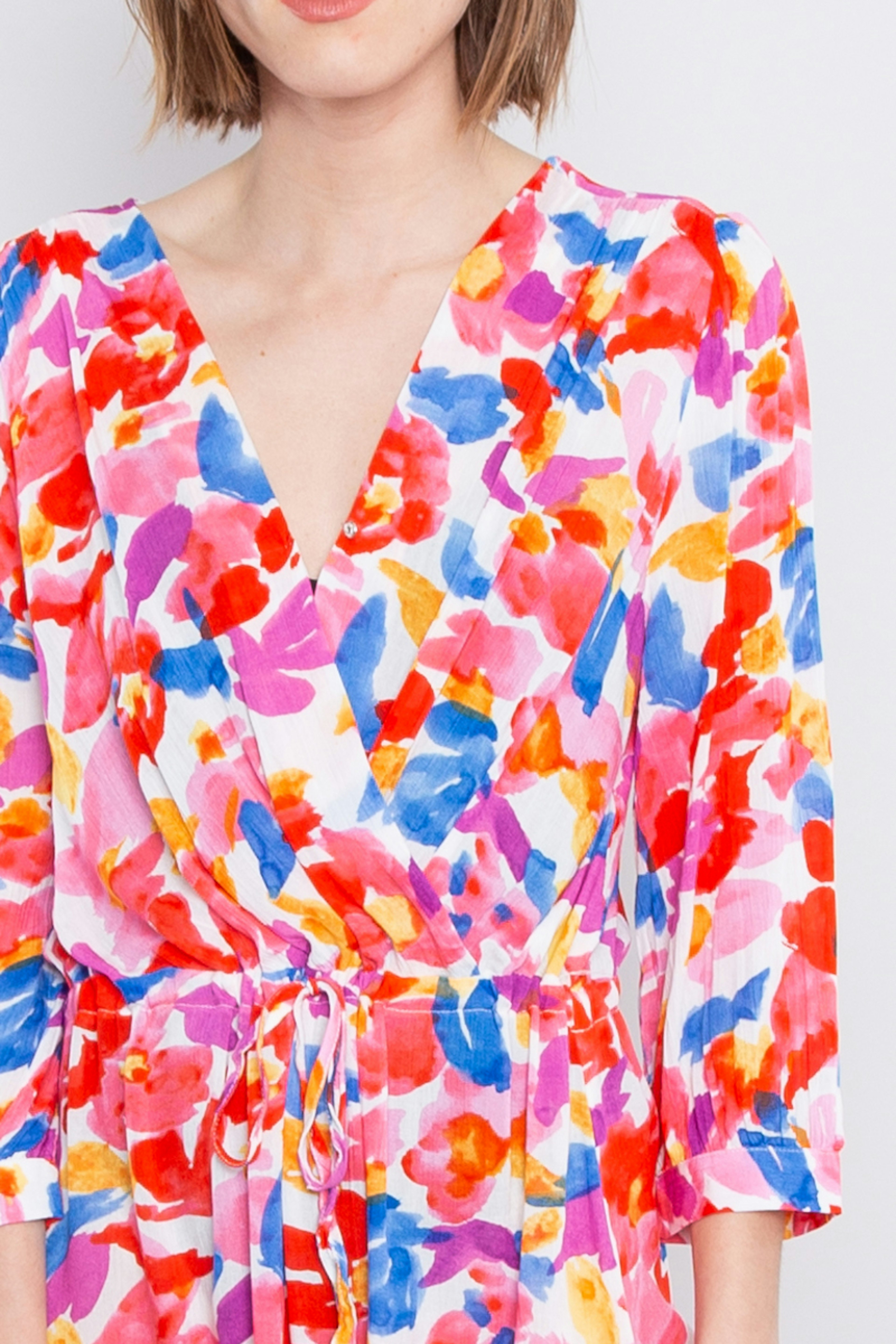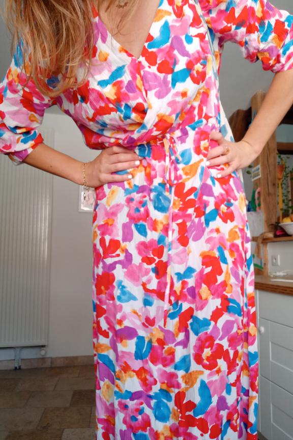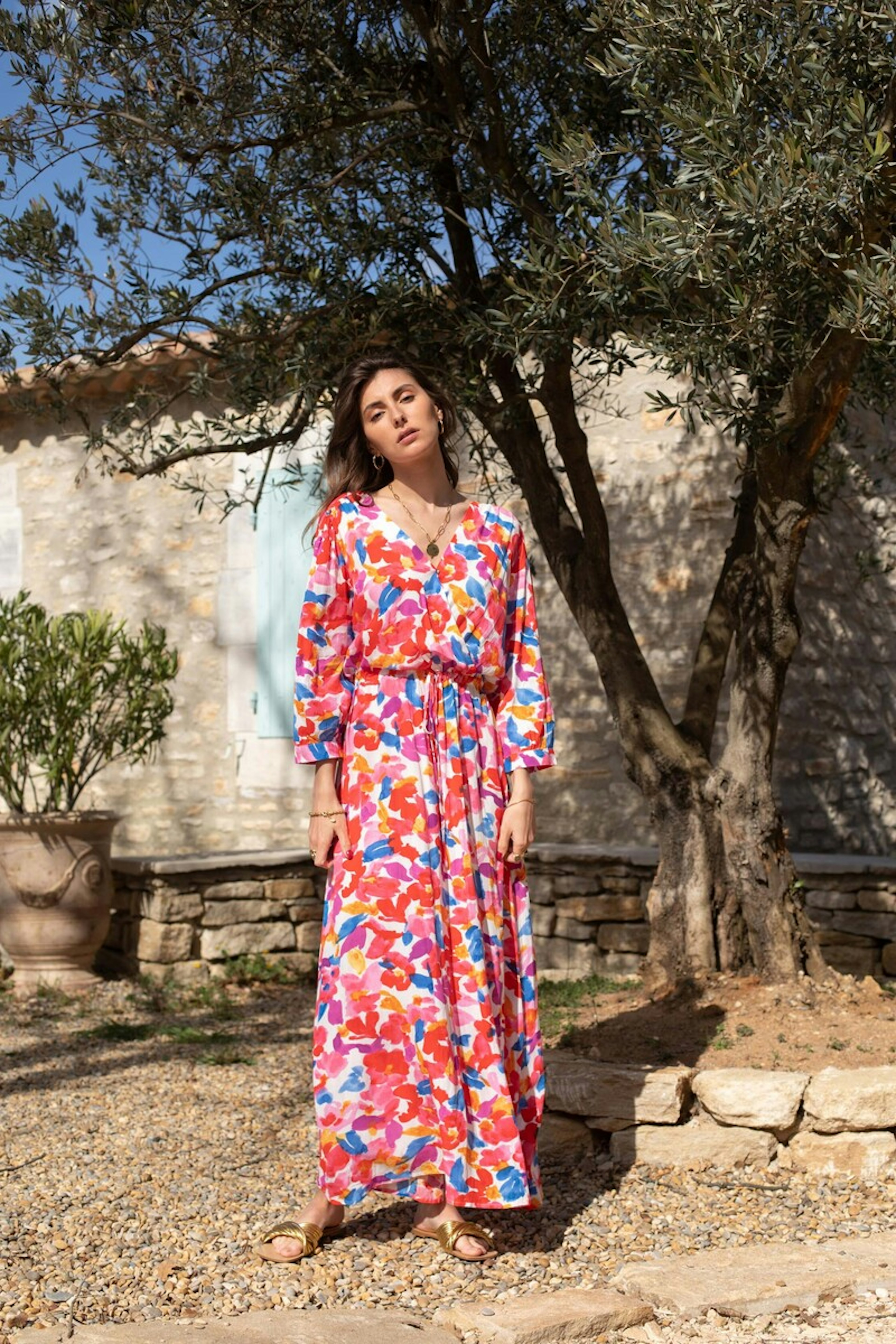 โข Robe longue imprimรฉe fleurie mutlicolore โข Manches 3/4 โข Dรฉcolletรฉ V portefeuille fermรฉ ร l'aide d'une pression โข Ceinture intรฉgrรฉe ร la taille