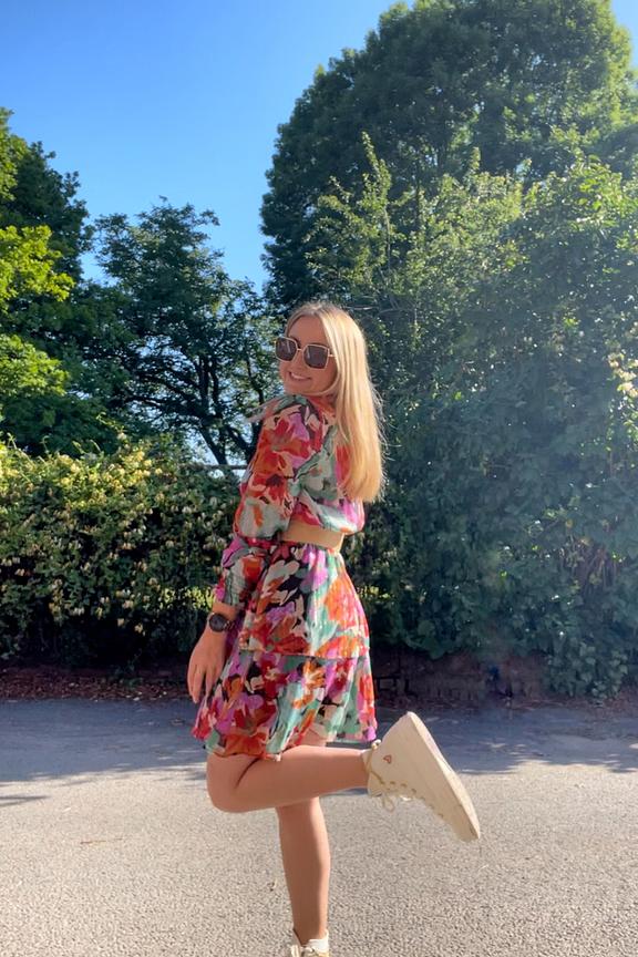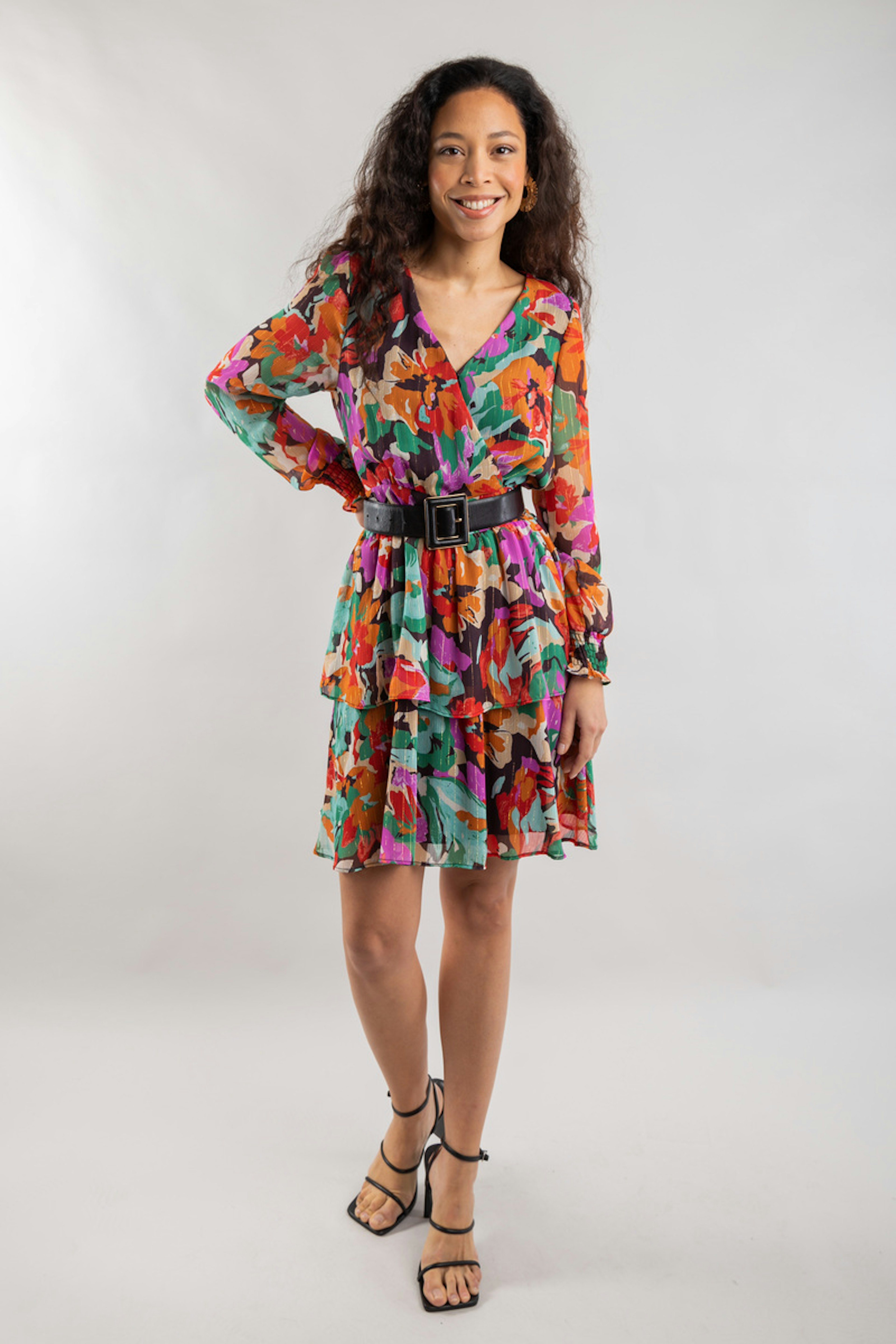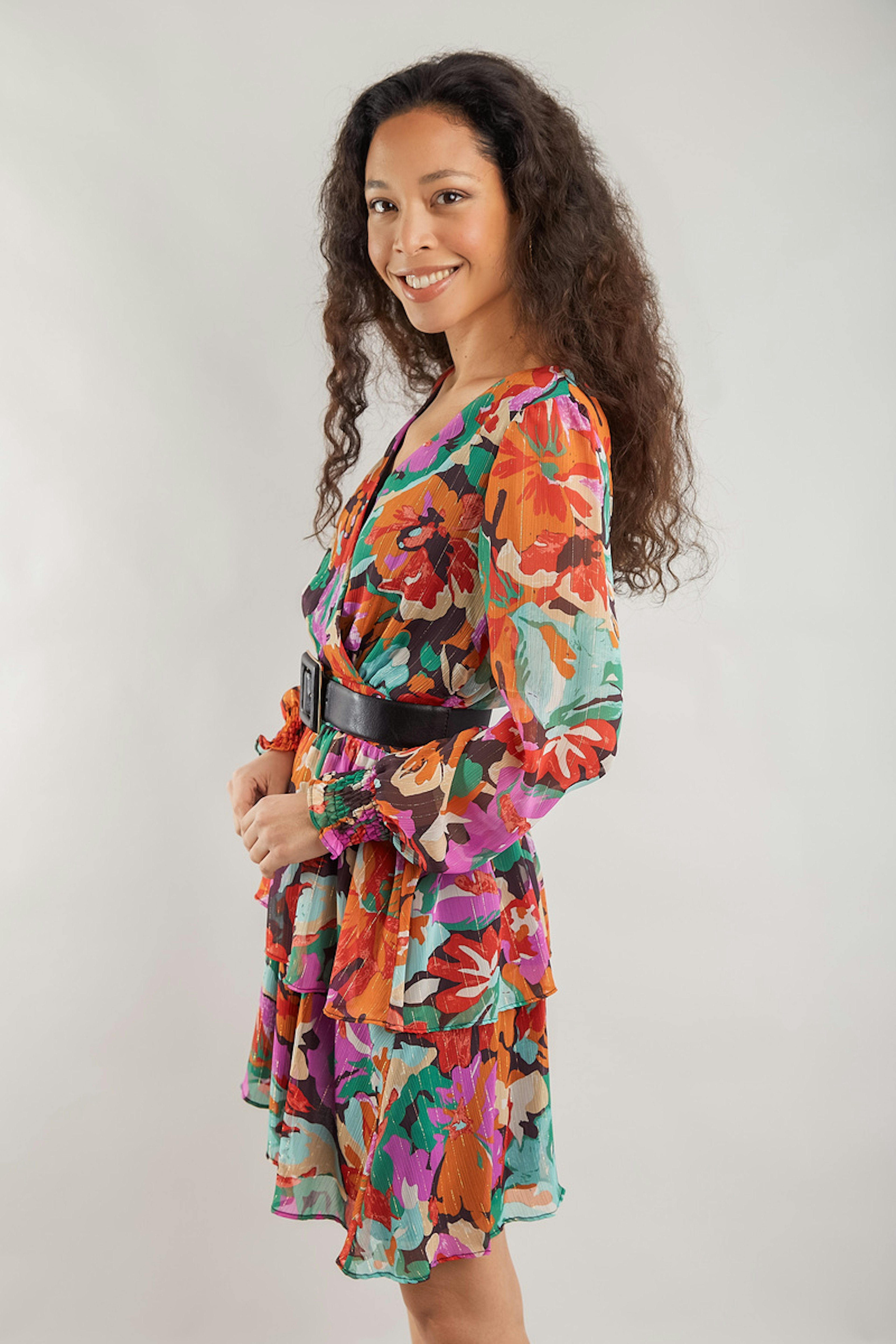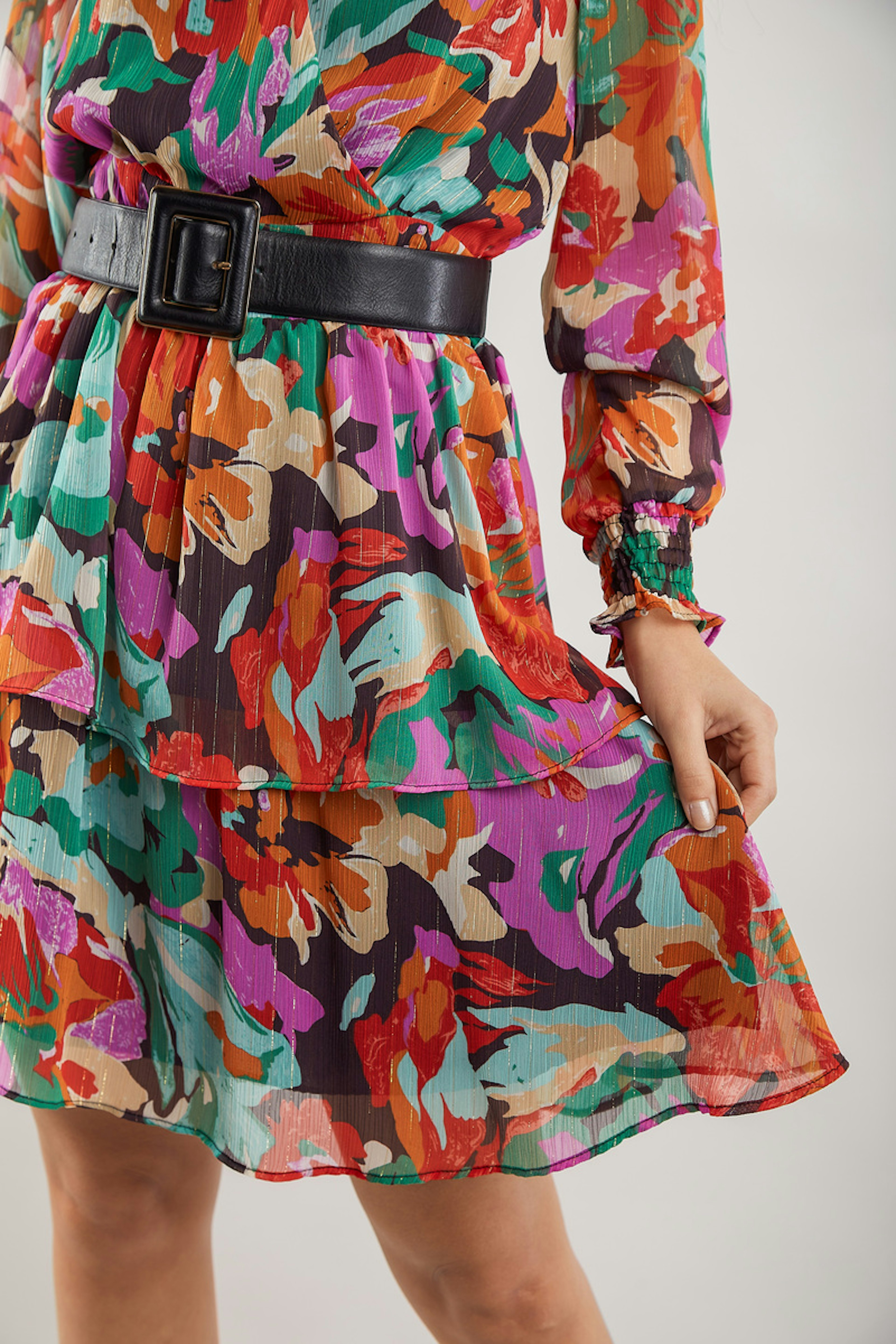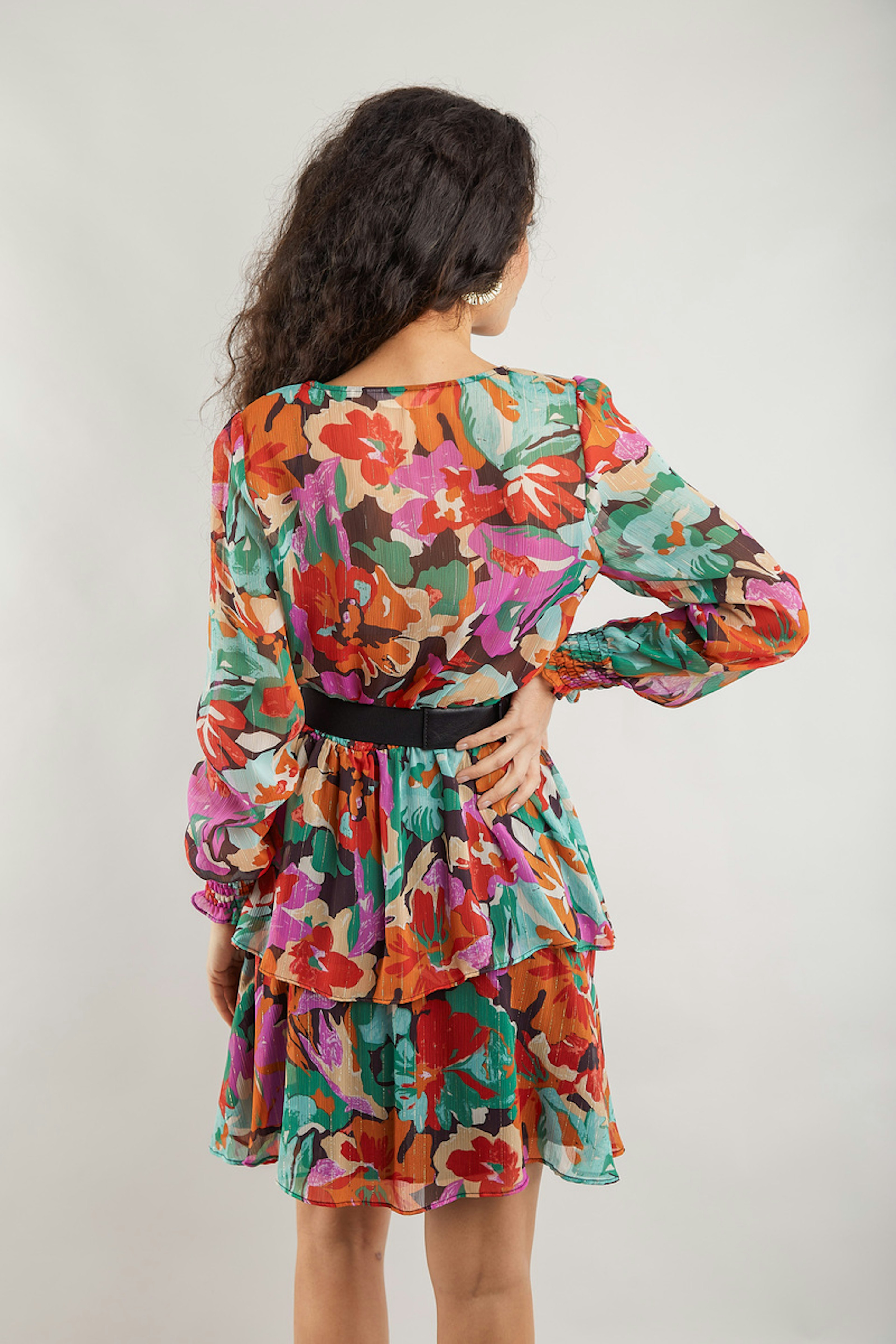 โข Robe femme โข Courte โข Motif floral โข Manches longues โข Col en V