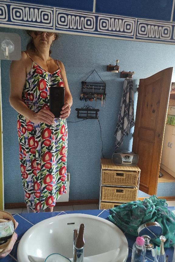 โTrรจs joli imprimรฉ. La coupe de la robe n'est pas celle qui me va le mieux mais รงa passe... c'est l'รฉtรฉ !โ