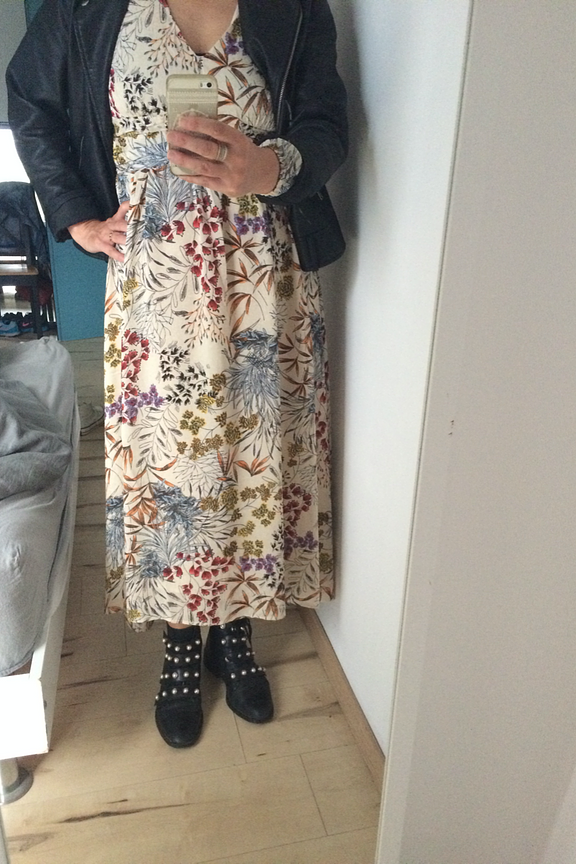 โ€œJ'ai craquรฉ... je l'ai gardรฉ ! Robe fluide, mais assez รฉpaisse pour de la mi-saison. Habille trรจs bien ! Bohรจme-chic, j'adore !โ€